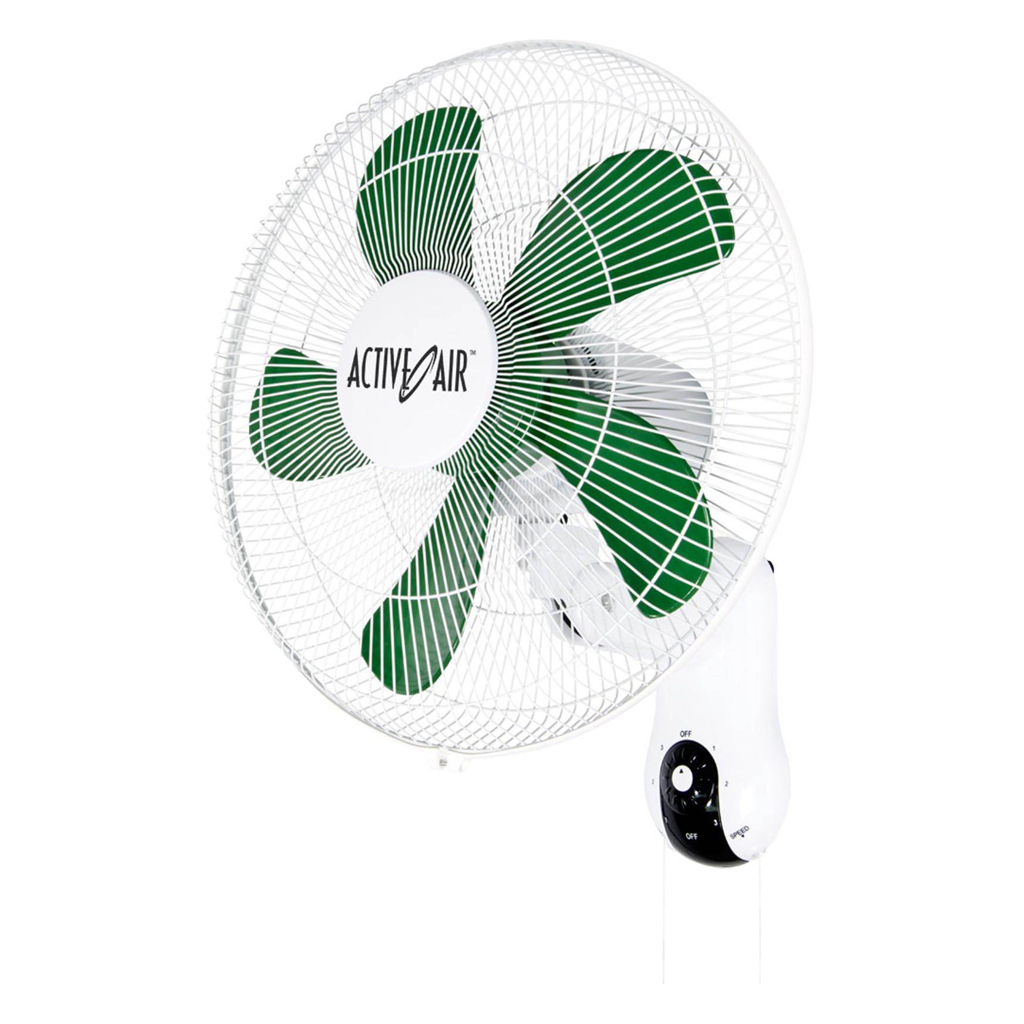 The Active Air Heavy-Duty Wall Mount Fan is whisper-quiet and easily attaches to your wall with a simple bracket. This easy-to-mount, 55-watt hydroponic fan features 3 variable speeds, lock-in-place or side-to-side oscillation, a steel frame, aluminum blades for maximum durability, and a tilting head for directional operation. It also comes with a 6-foot power cord and 2 pull chains to operate the speed and oscillation.