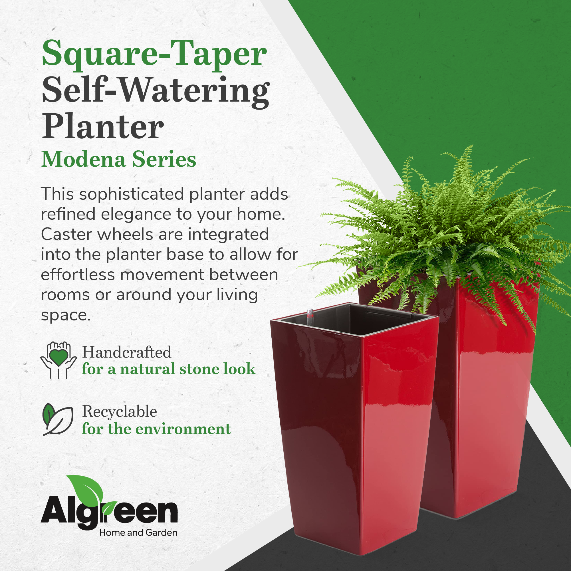Crafted from frost and UV-resistant materials, your planter is totally protected from the elements. Featuring a decorative glossy red finish, style meets functionality with Algreen Modena Square Planter.