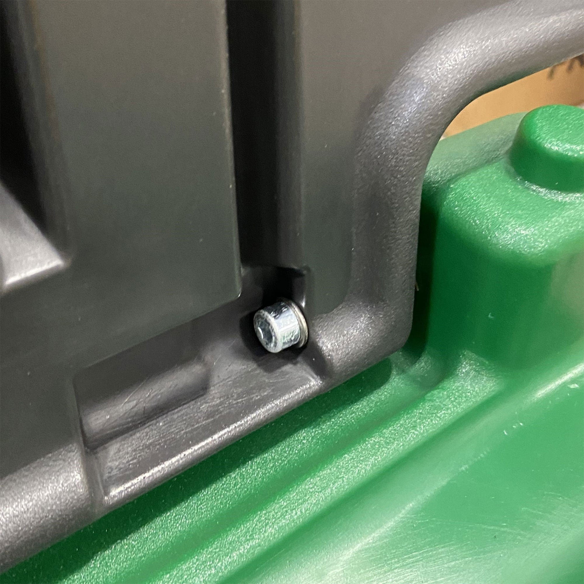 - Crafted from durable roto-molded polyethylene, it comes with an integrated covering lid that safeguards against adverse weather conditions and harmful sun rays, equipped with lockable draw latches for added security, ensuring the integrity of stored fuel