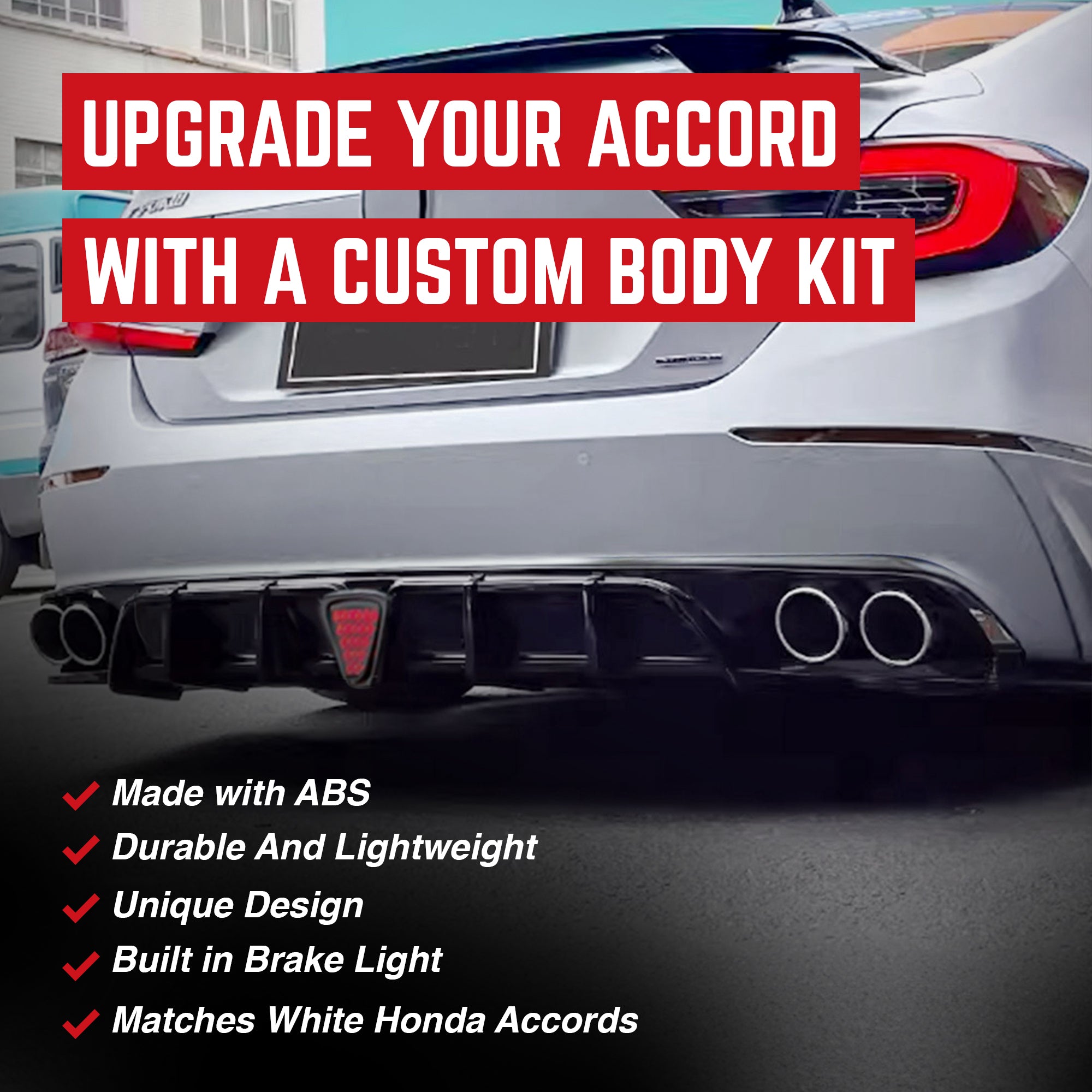 Unleash the full potential of the Honda Accord's style and performance by choosing this AMERICAN MODIFIED Rear Bumper Diffuser Lip with LED Light. Elevate the driving experience with a touch of aggression and functionality, making a bold statement on the road.
