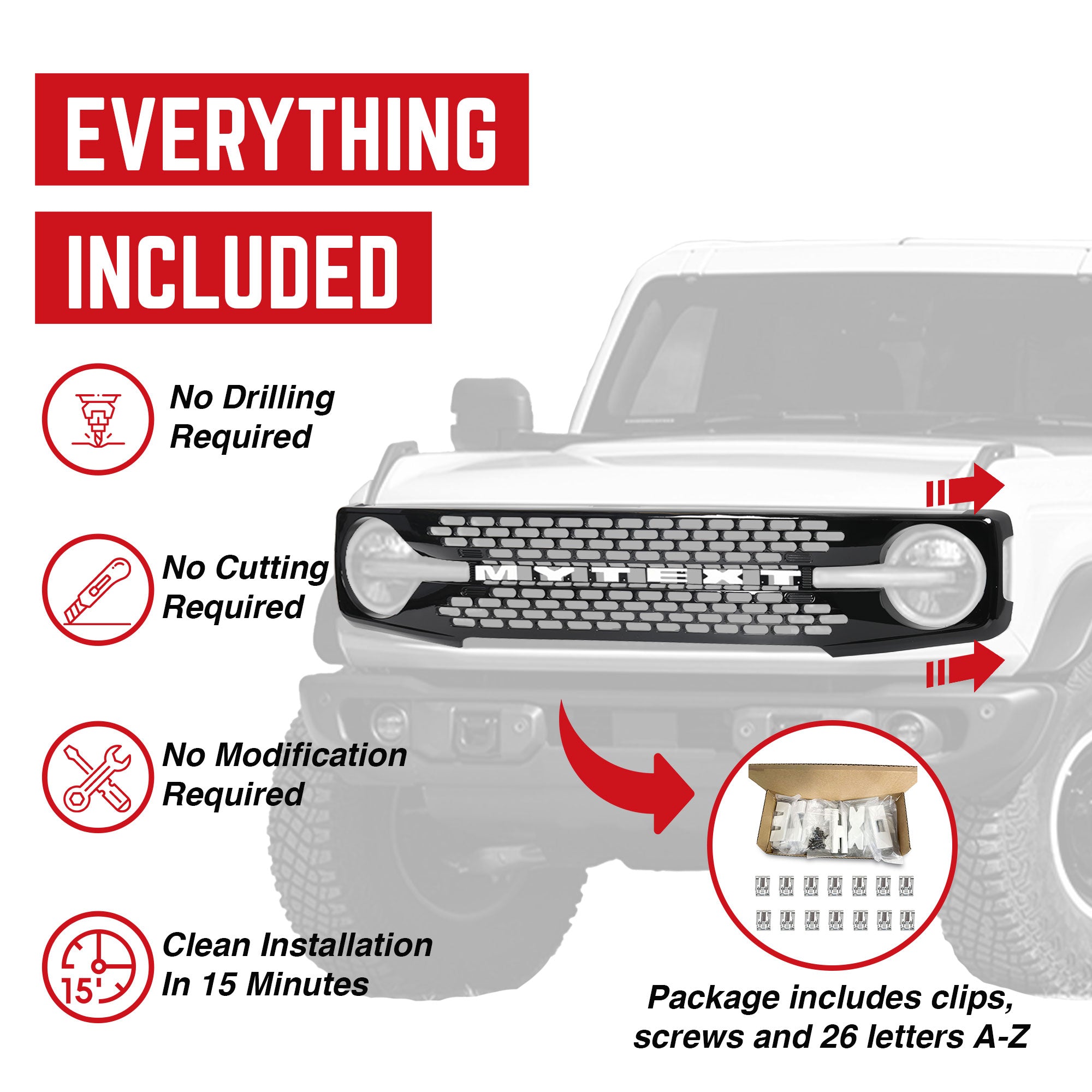 - Complete with A to Z DIY letters for your 2021, 2022, and 2023 Ford Bronco