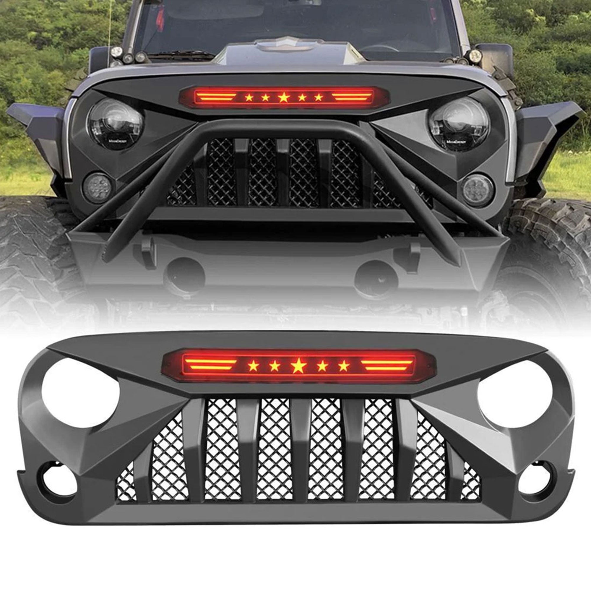 AMERICAN MODIFIED Gladiator Front Grille w/Red Lights for 07-18 Jeep Wrangler JK