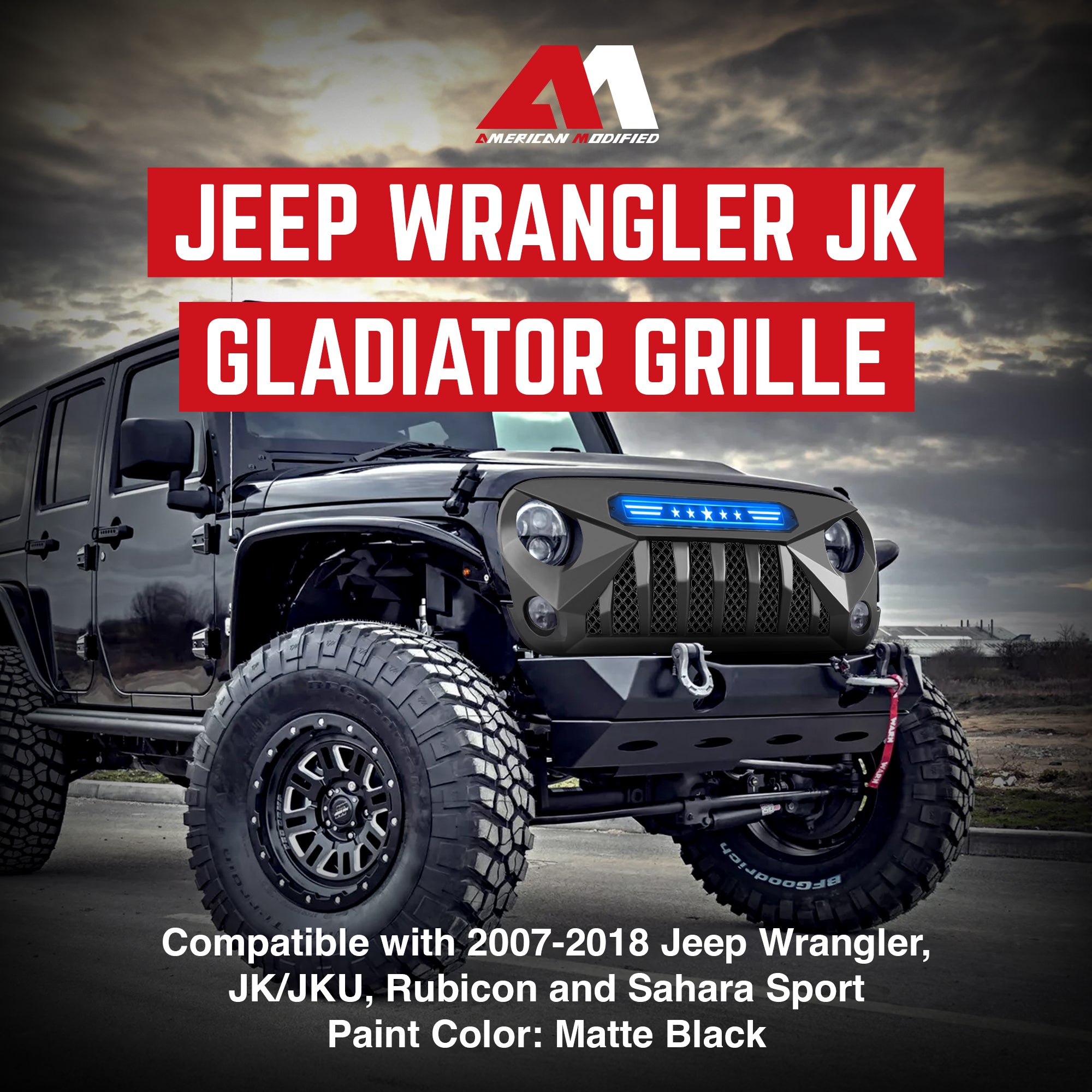 AMERICAN MODIFIED Gladiator Grille with Blue Lights for 07-18 Jeep Wrangler JK