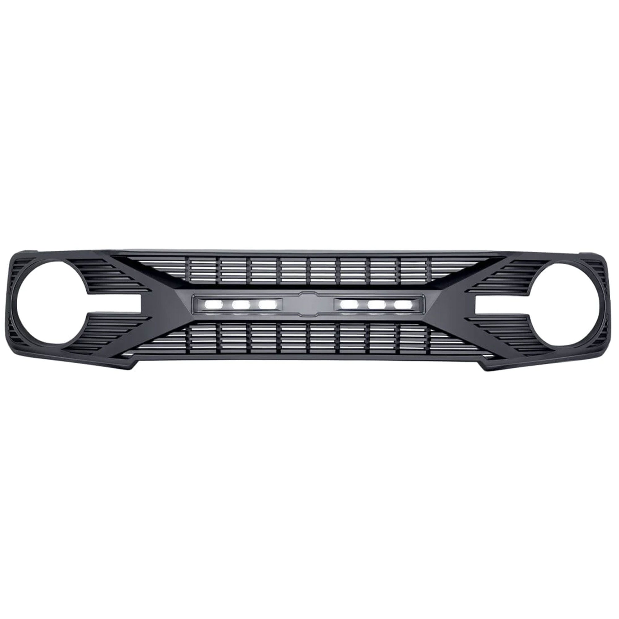 Comes with LED off-road lights to enable effortless navigation across any off-road trail. Heads will surely turn as you enjoy your ride with this innovative grille, uniquely designed and well-constructed, made perfectly for those who like their vehicles to stand among the crowd. Made from thermoformed acrylonitrile butadiene styrene (ABS), this extremely durable material is lightweight and impact-proof, capable of withstanding any hazards of off-road driving.
