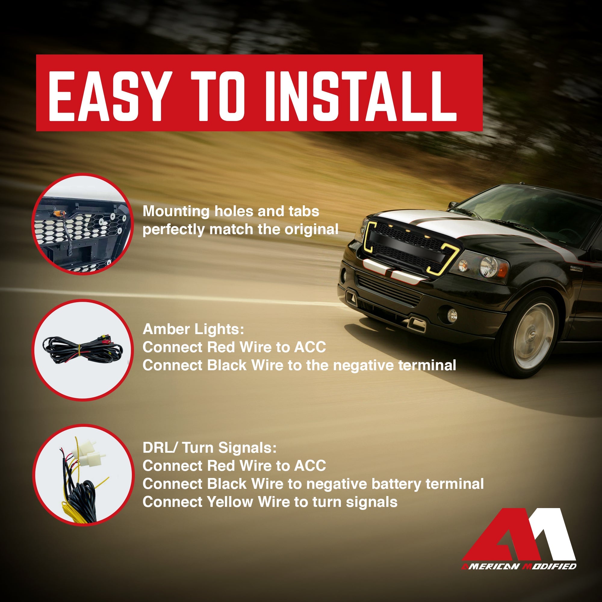 AMERICAN MODIFIED Raptor Style Mesh Grille w/Turn Lights for 2004-2008 Ford F150