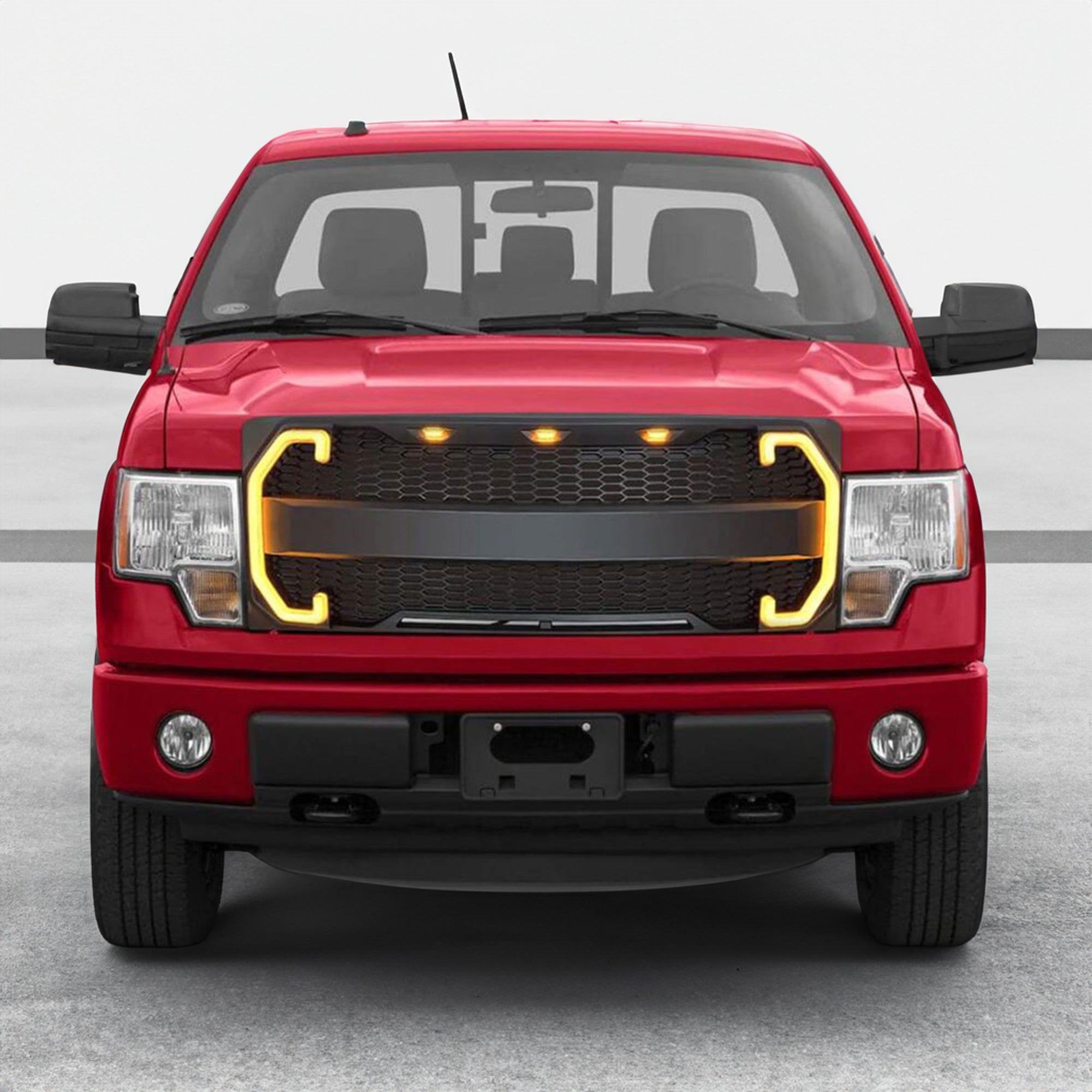 AMERICAN MODIFIED Raptor Style Mesh Grille w/Turn Lights for 2009-2014 Ford F150