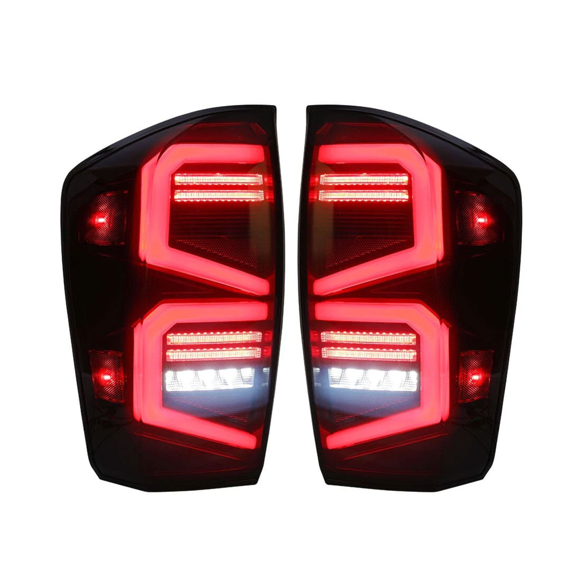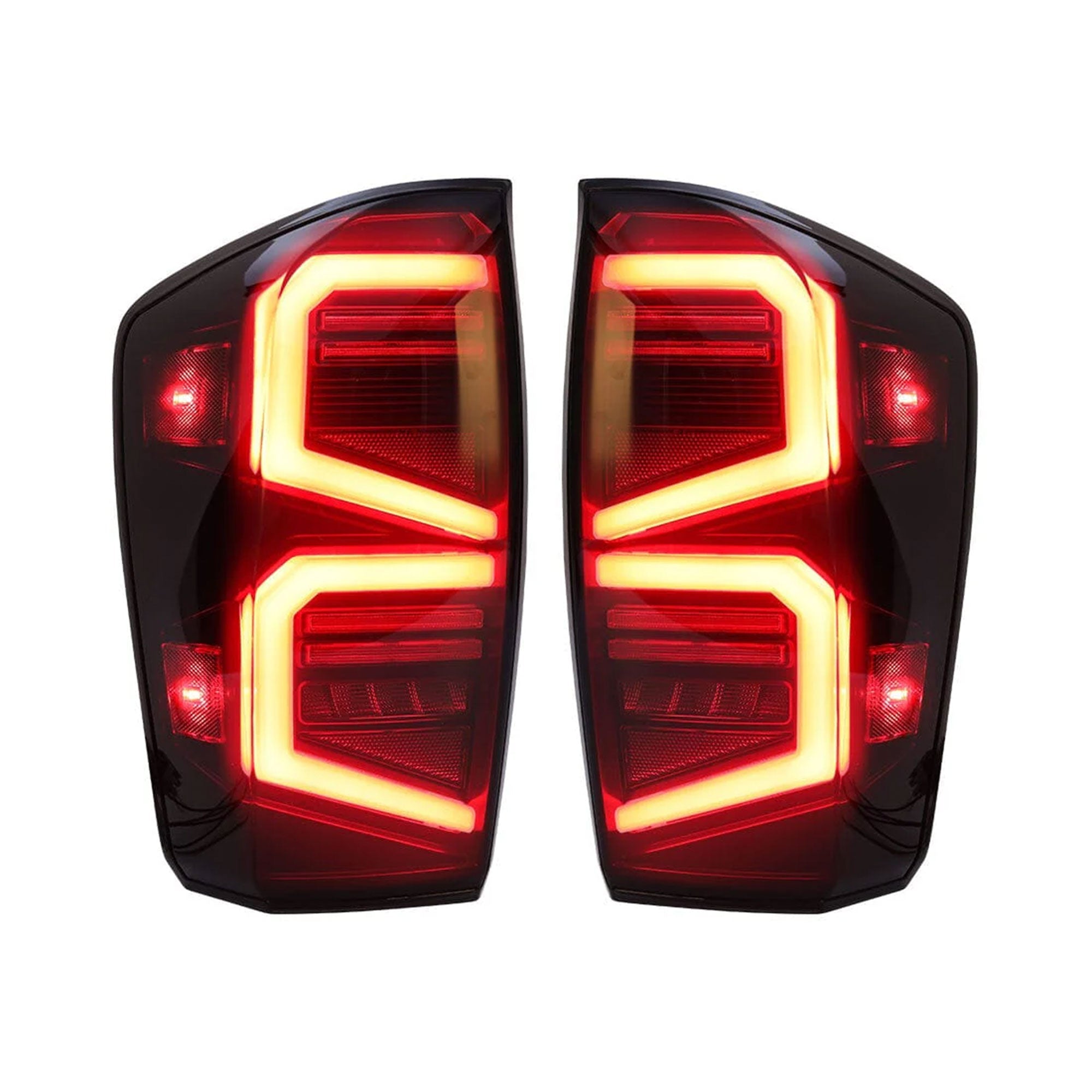 - LED tail lights feature a black housing and unique smoke lens, compatible with 2016 to 2023 Toyota Tacoma models