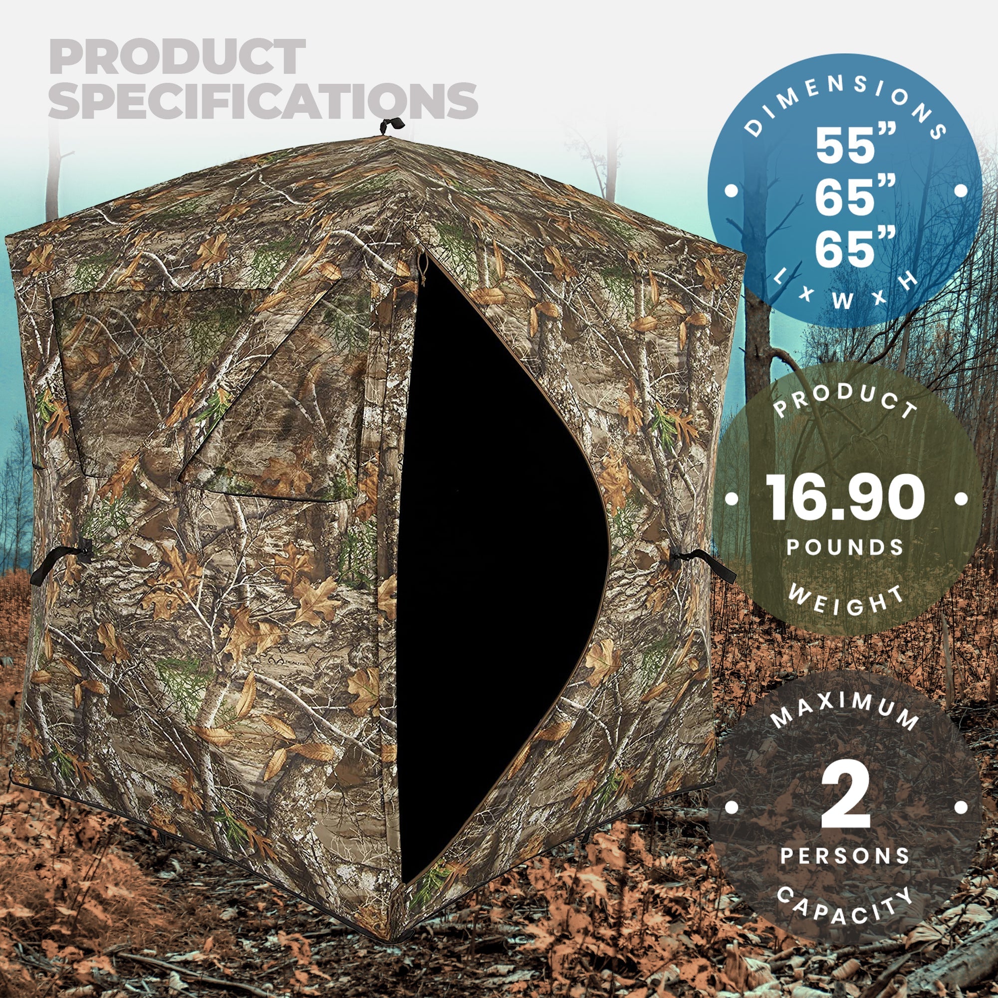 - Shoot-through mesh windows optimized for archery and rifle hunters