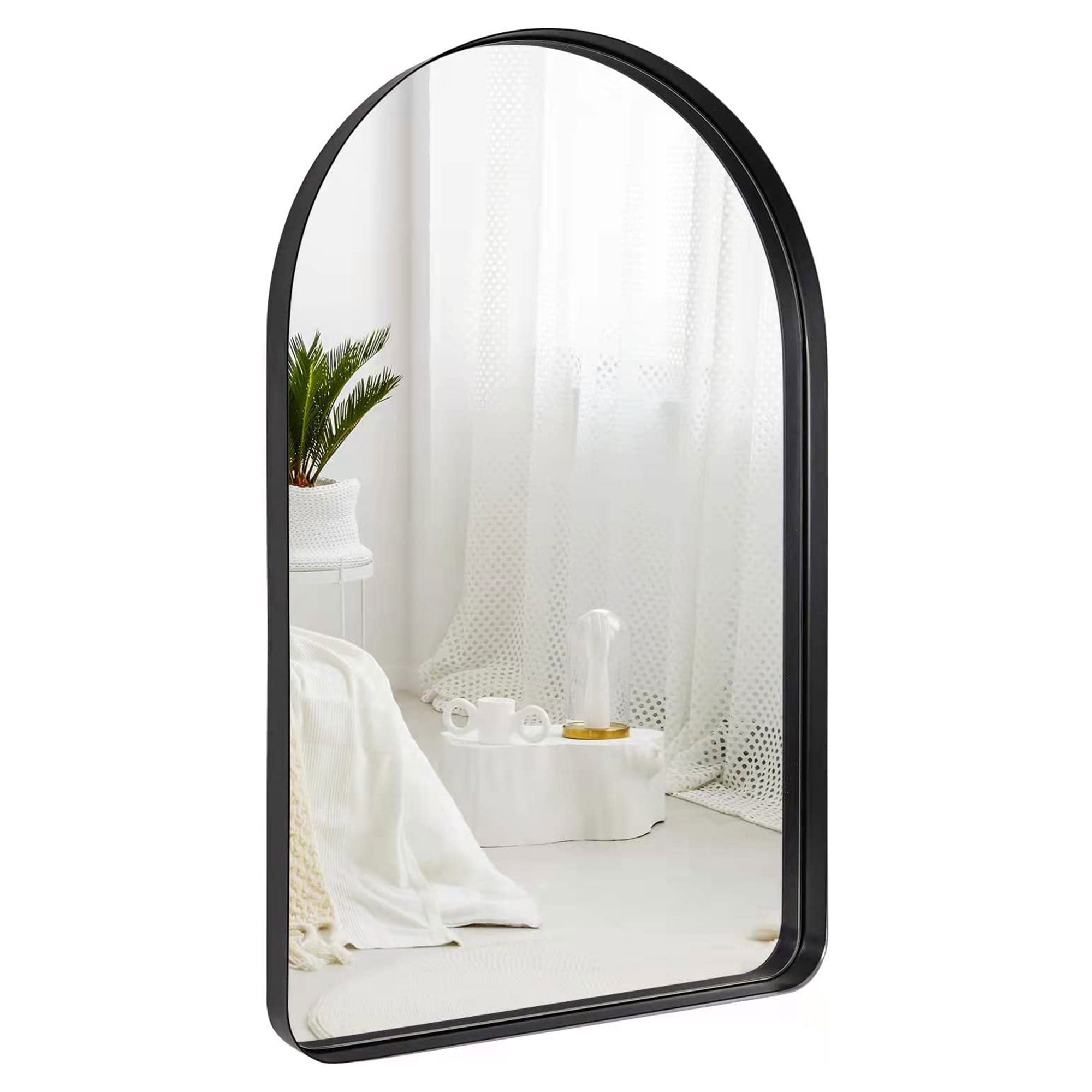 ANDY STAR 24 x 38" Modern Wall Mounted Metal Frame Arched Vanity Mirror, Black