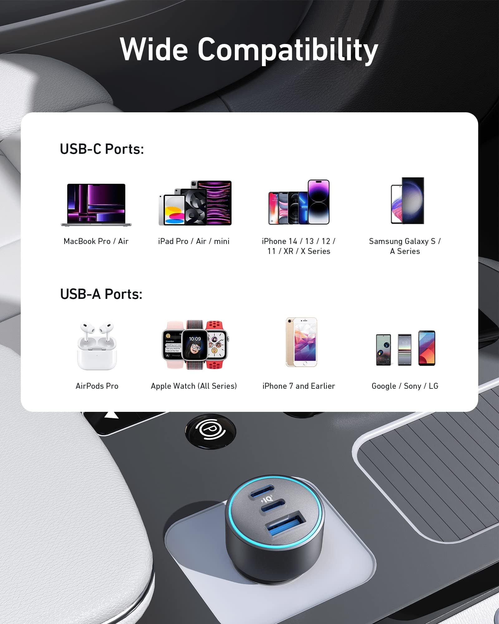 - Ultra-Compact: The small and compact car charger, measuring just 2.3 × 1.2 × 1.2 inches, makes it the perfect travel companion for non-stop power on the road.