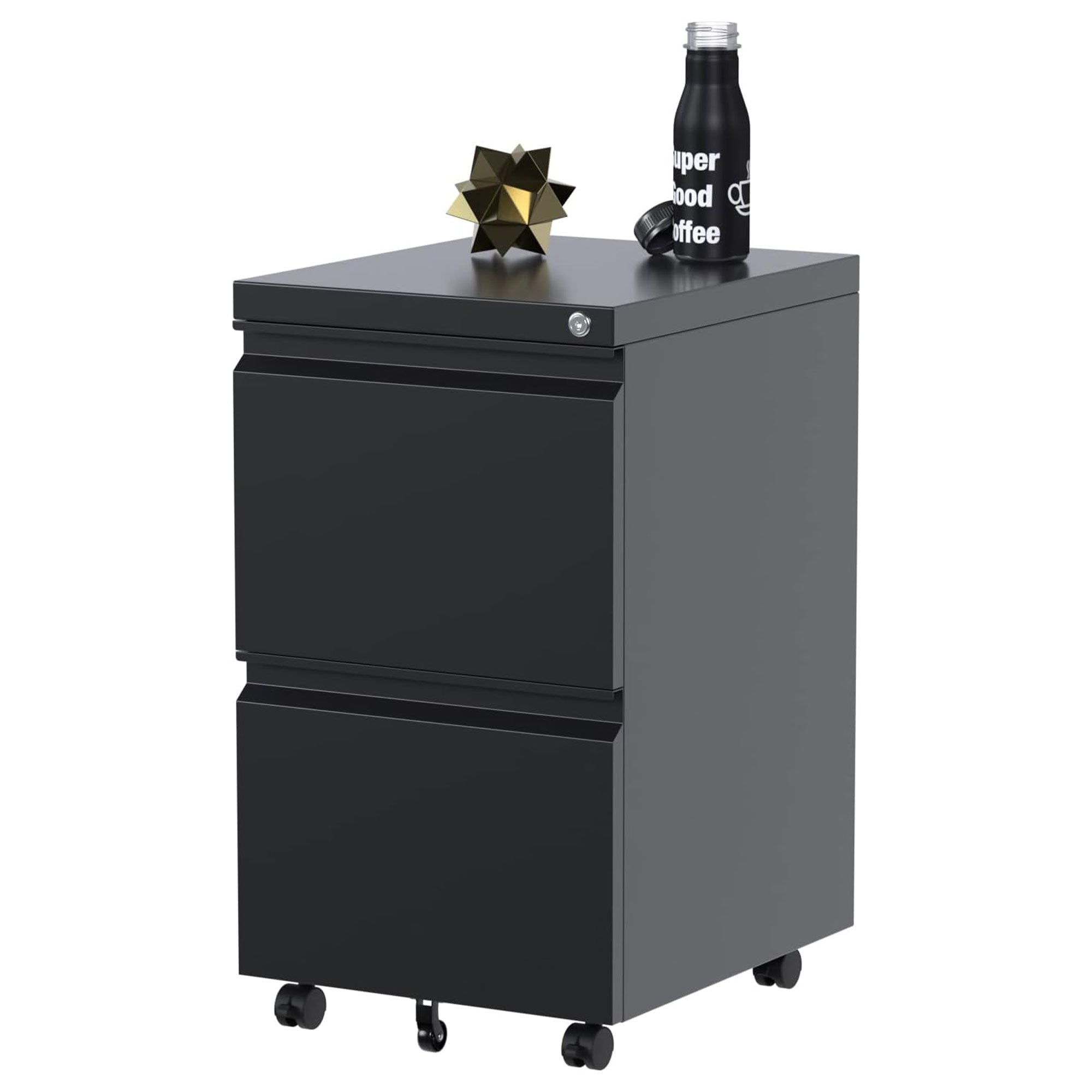 AOBABO 2 Drawer Mobile Metal Organizer Filing Cabinet, Fully Assembled, Black