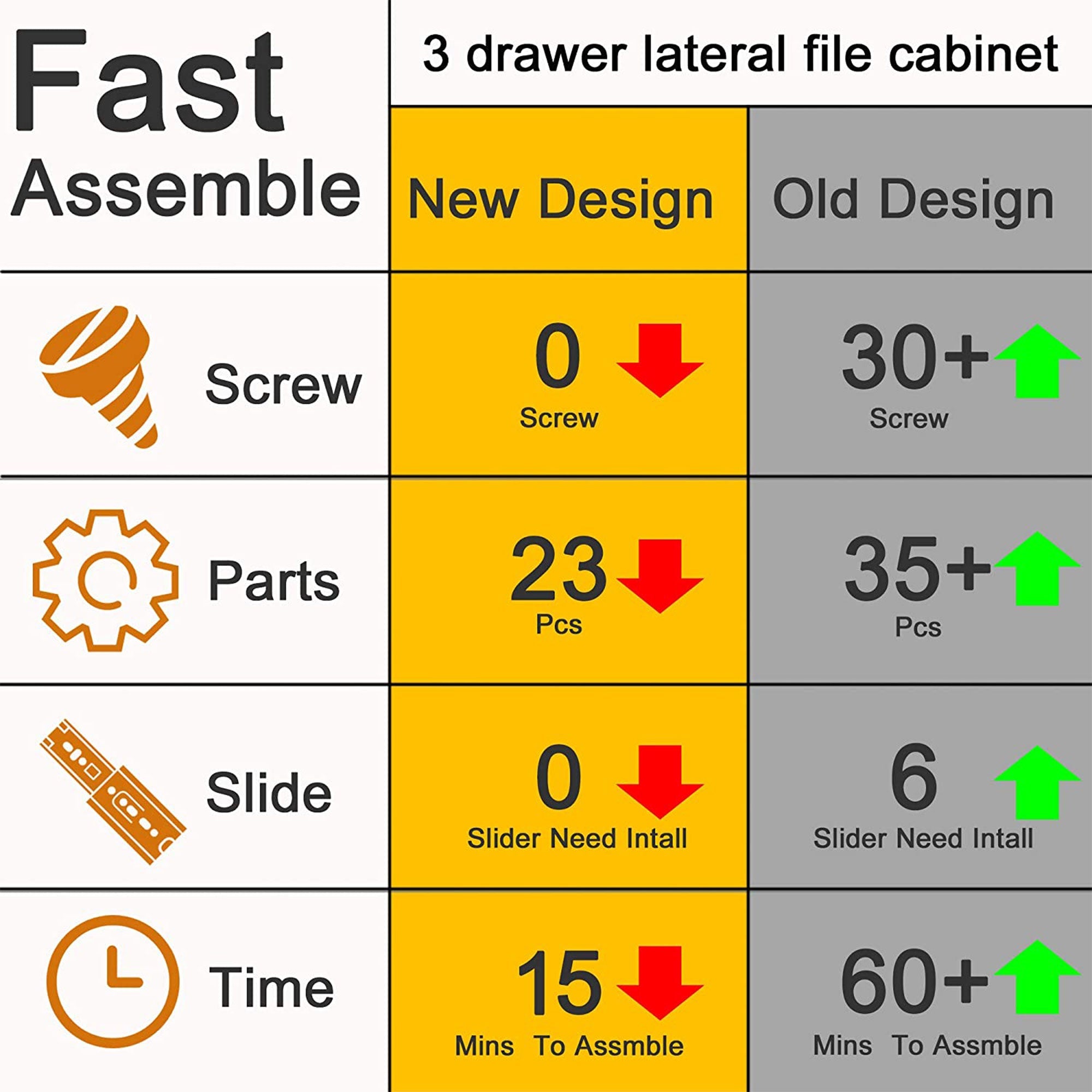 Get sleek style, functionality, and convenient safety all-in-1 with the AOBABO 3 Drawer Lateral File Cabinet.