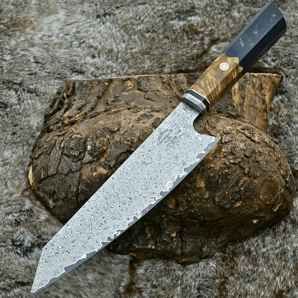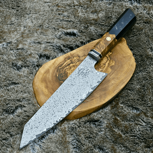 Aurora Japanese Chef Knife with Olive Burl Wood & Resin Composite Handle