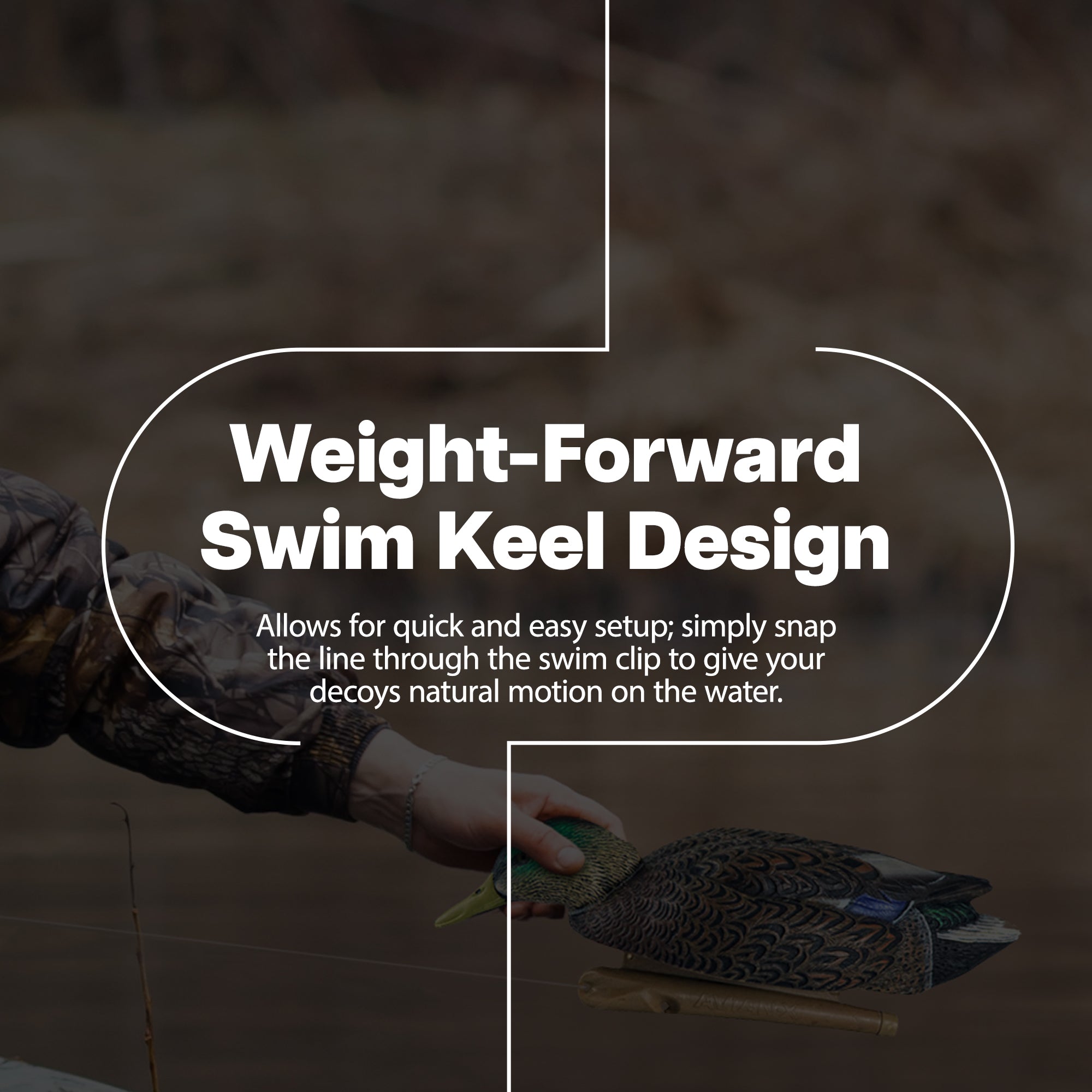 - Weight-forward swim keel design allows for quick and easy setup; simply snap the line through the swim clip to give your decoys natural motion on the water