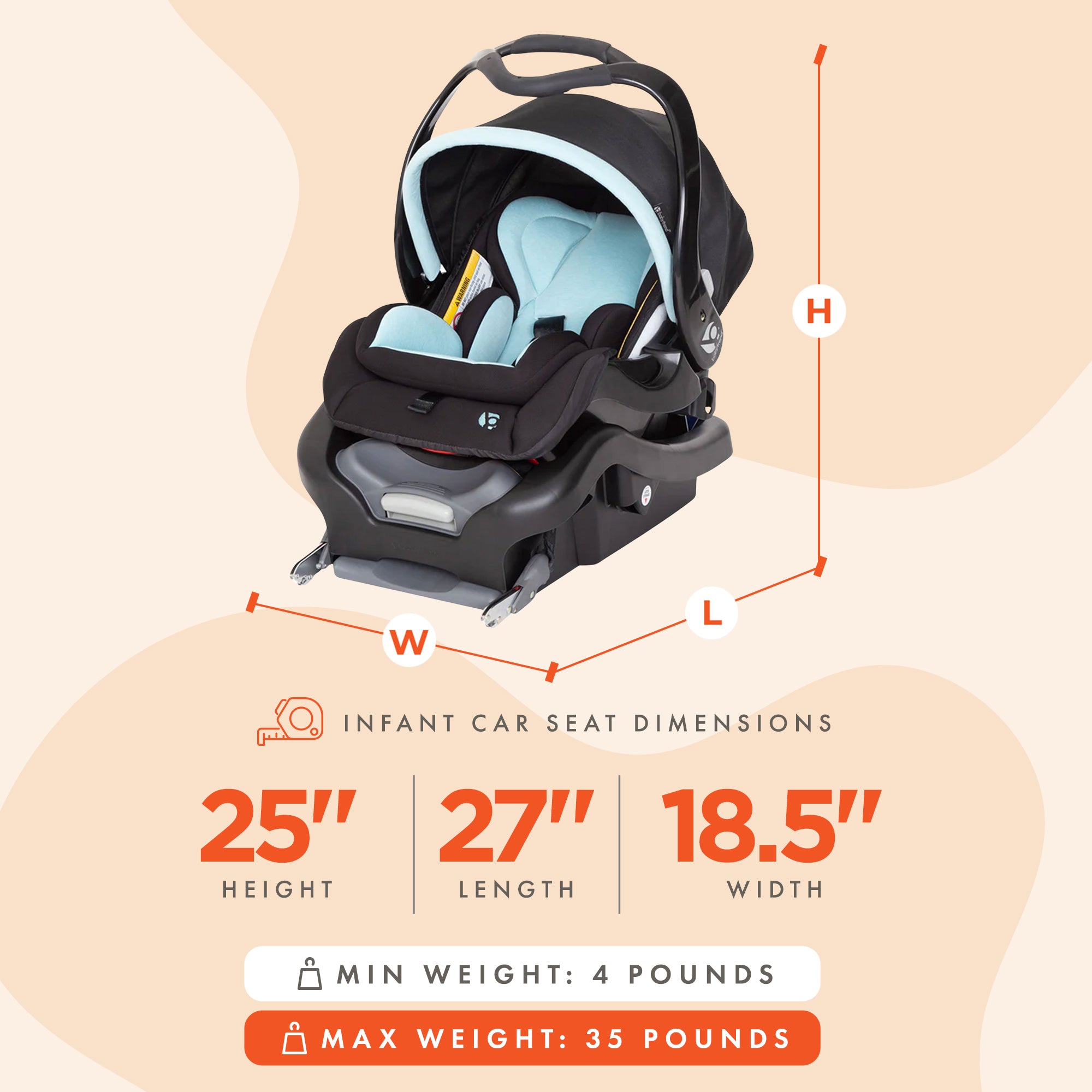 Featuring EPS energy-absorbing foam, this baby car seat provides superior side-impact head protection. The 5-point safety harness comes with one-handed adjustment and a push-button release for quick and convenient use. The no-rethread harness installation ensures a simple and secure setup. This new born baby car seat also includes a Delta multi-grip carrying handle for comfortable portability, making it easy to transport your little one. The removable 4-piece grow-with-me insert ensures the ideal fit, and a small insert is included for babies under 4 pounds. As your child grows, you can remove the inserts for added comfort. The extra-large canopy offers ample coverage to shield your baby from the sun and wind. Whether you're taking a stroll in the park or a road trip adventure, your baby will be safe and comfortable. With this baby car seat, you can experience a great ease of use with the one-hand easy-access seat release. The base features four recline positions and a flexible latch connector with built-in storage, allowing for a secure and adjustable fit. Plus, the built-in belt lock-off ensures a tight and reliable installation every time. Crafted from sturdy metal, excellent-quality polyester, durable plastic, and soft foam padding, this car seat is designed to last. This baby car seat measures 17 inches in length, 29.50 inches in width, and 17.50 inches in height, and it weighs 18.13 pounds. With regards to the weight recommendation, this baby car seat recommends a 4-pound minimum and 35 pounds maximum weight. It also suggests 32 inches for the maximum height recommendation.