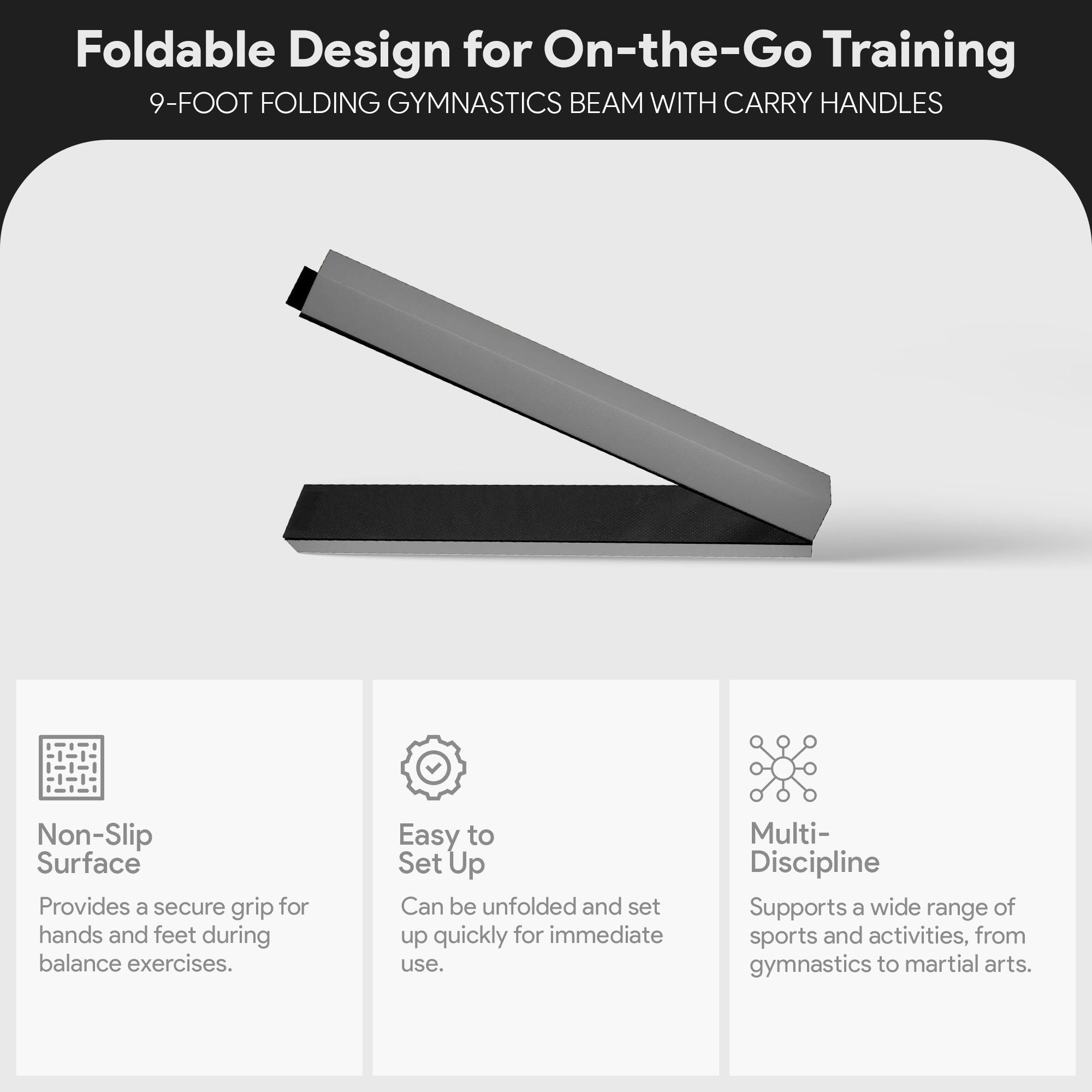• Designed for ease of use and portability, this folding floor balance beam is ideal for both gym and home settings