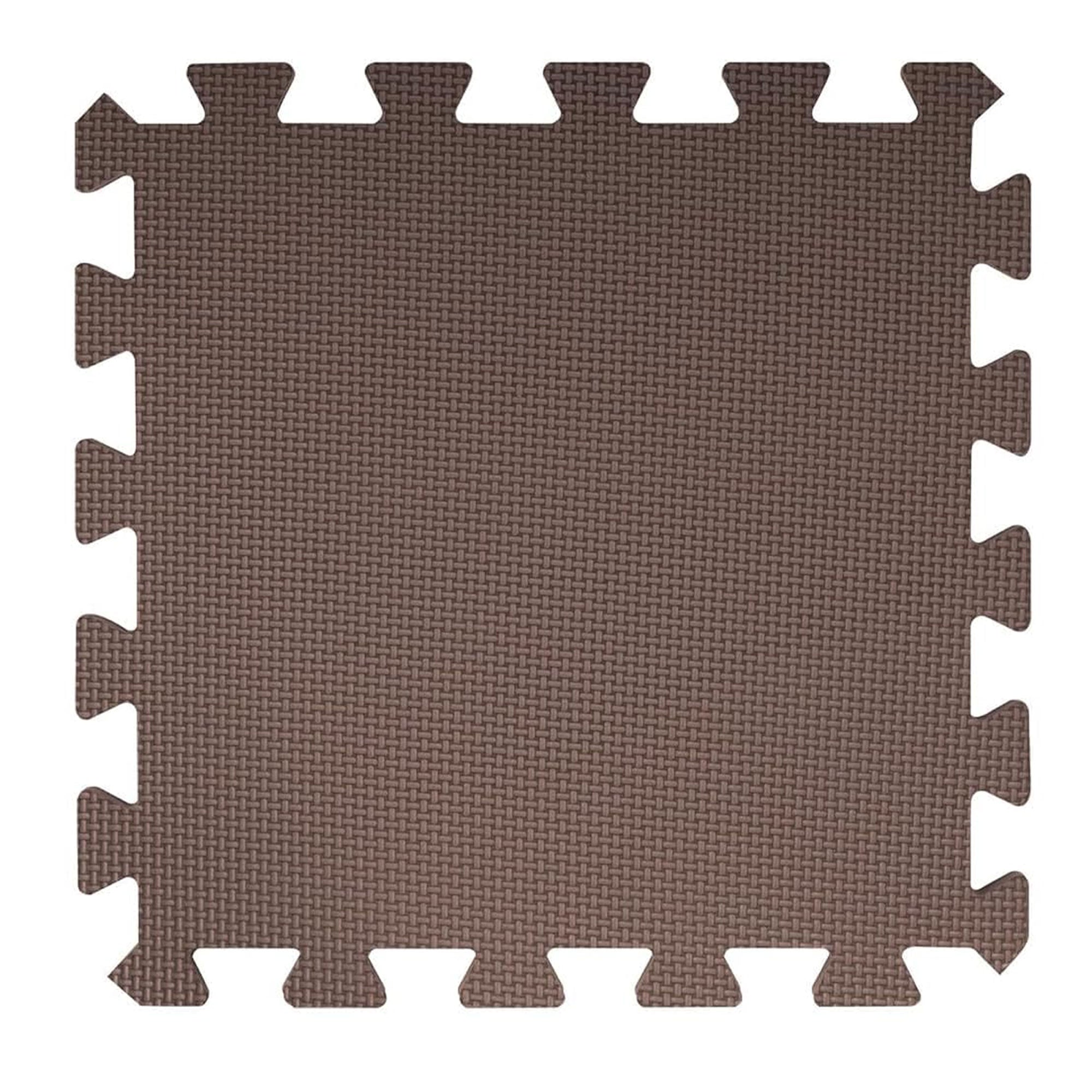 - Featured color scheme of blue, brown, and beige, this interlocking mat pack covers up to 16 square feet of play space, with each tile measuring 1 square foot