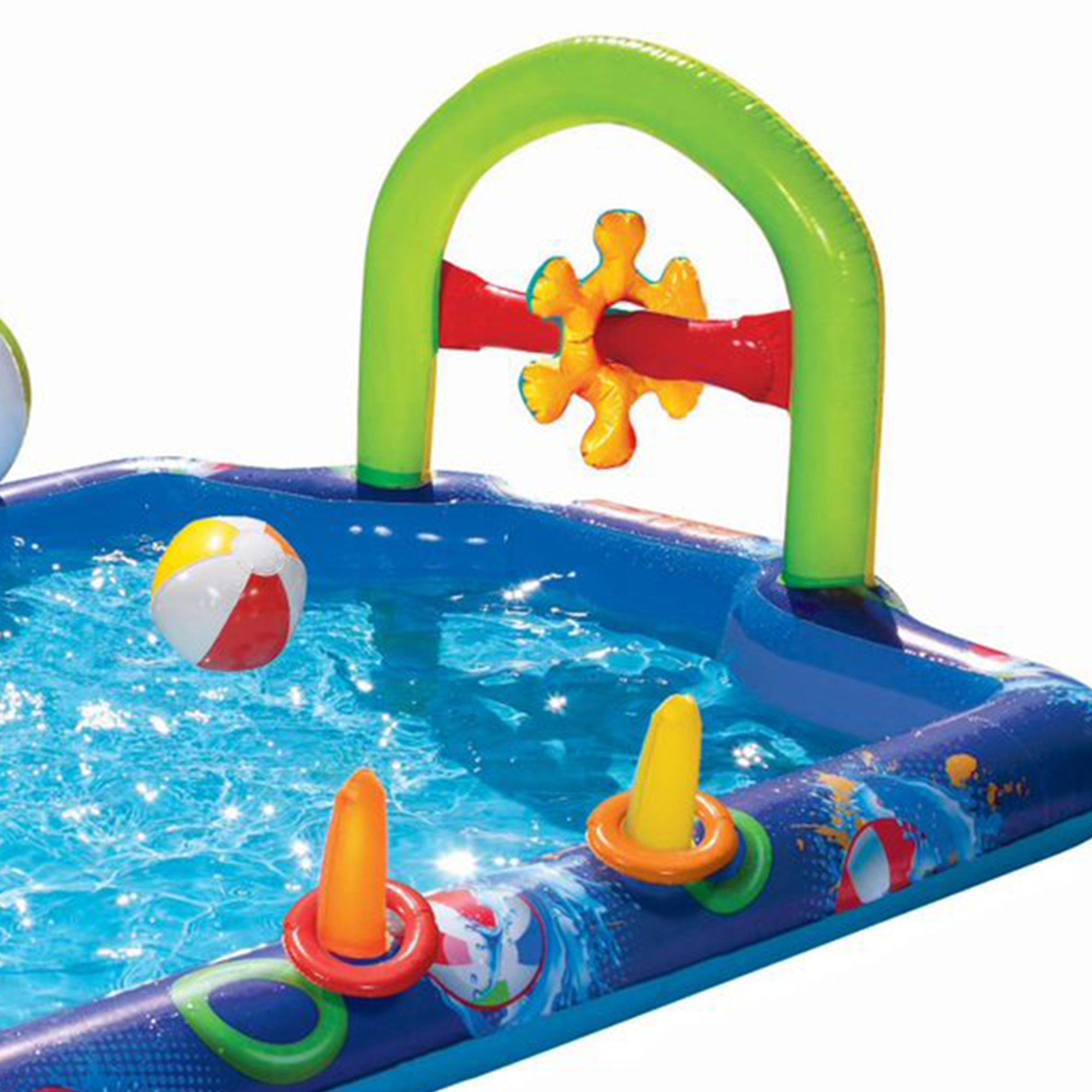 • Ball toss target and ring toss activities allow kids to play games while staying cool in the water