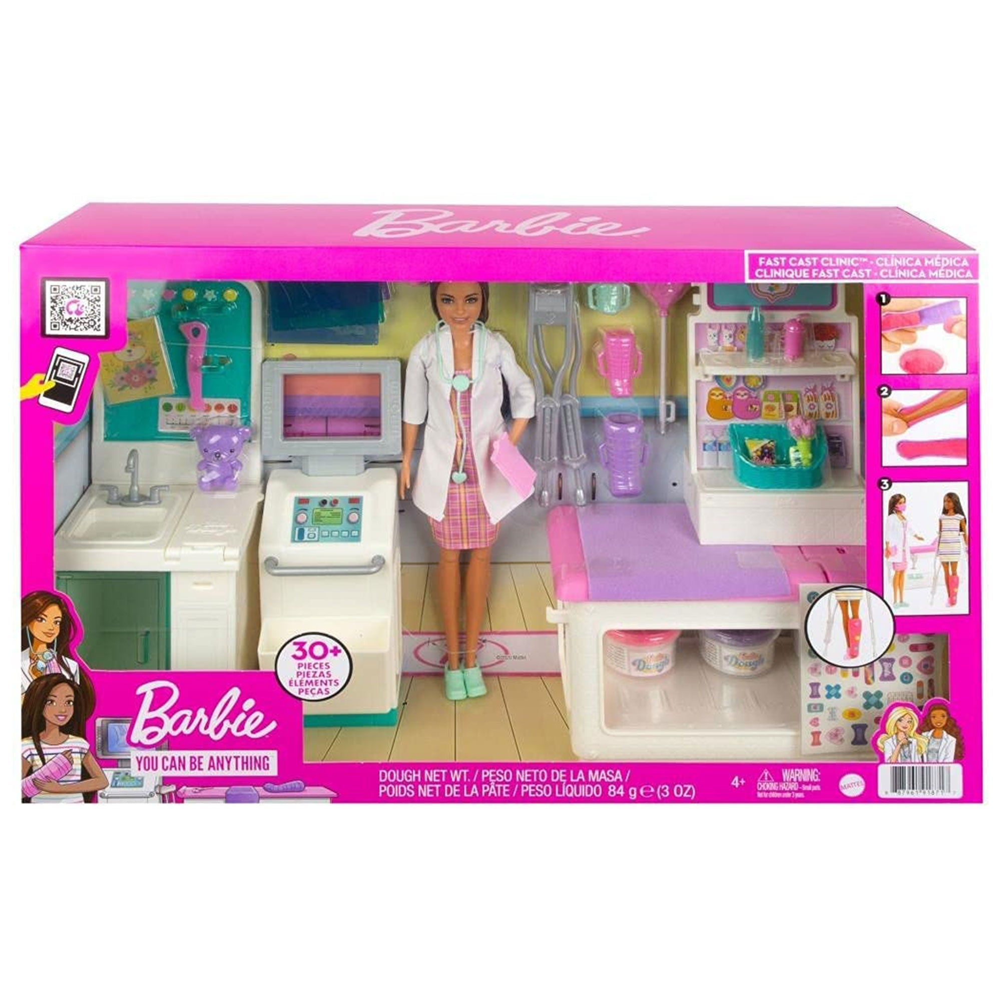 Give your aspiring doctor a taste of the medical world and spark their curiosity with the Barbie Fast Cast Clinic Playset with Brunette Barbie Doctor Doll.