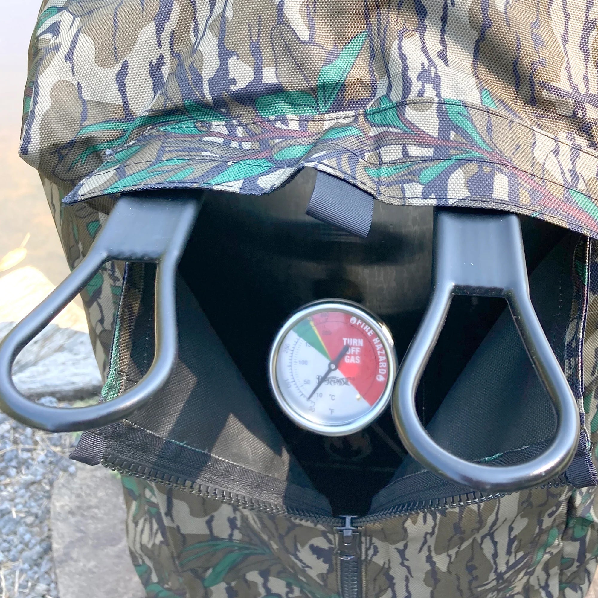 Featuring a camouflage pattern, it effortlessly blends into the outdoor environment, allowing you to immerse yourself in the beauty of nature while keeping your fryer protected. Crafted with a custom-fit design specifically tailored for the Bayou Classic 700-701 4-Gallon Fryer, it ensures a snug and secure fit, safeguarding your fryer from the elements.
