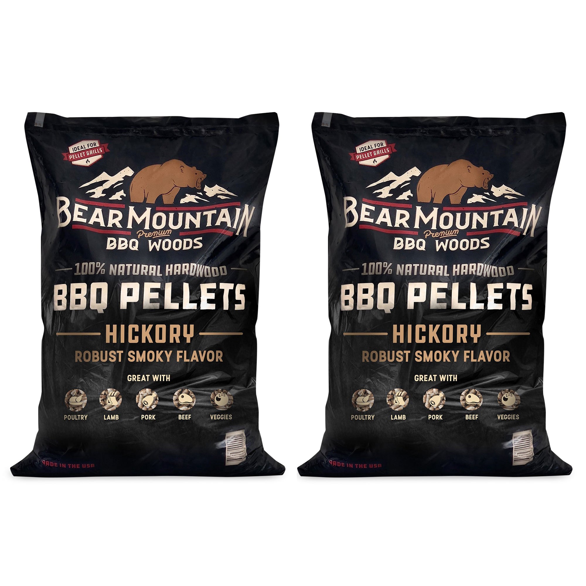Bear Mountain BBQ All-Natural Hardwood Hickory Smoker Pellets, 20 Lb (2 Pack)