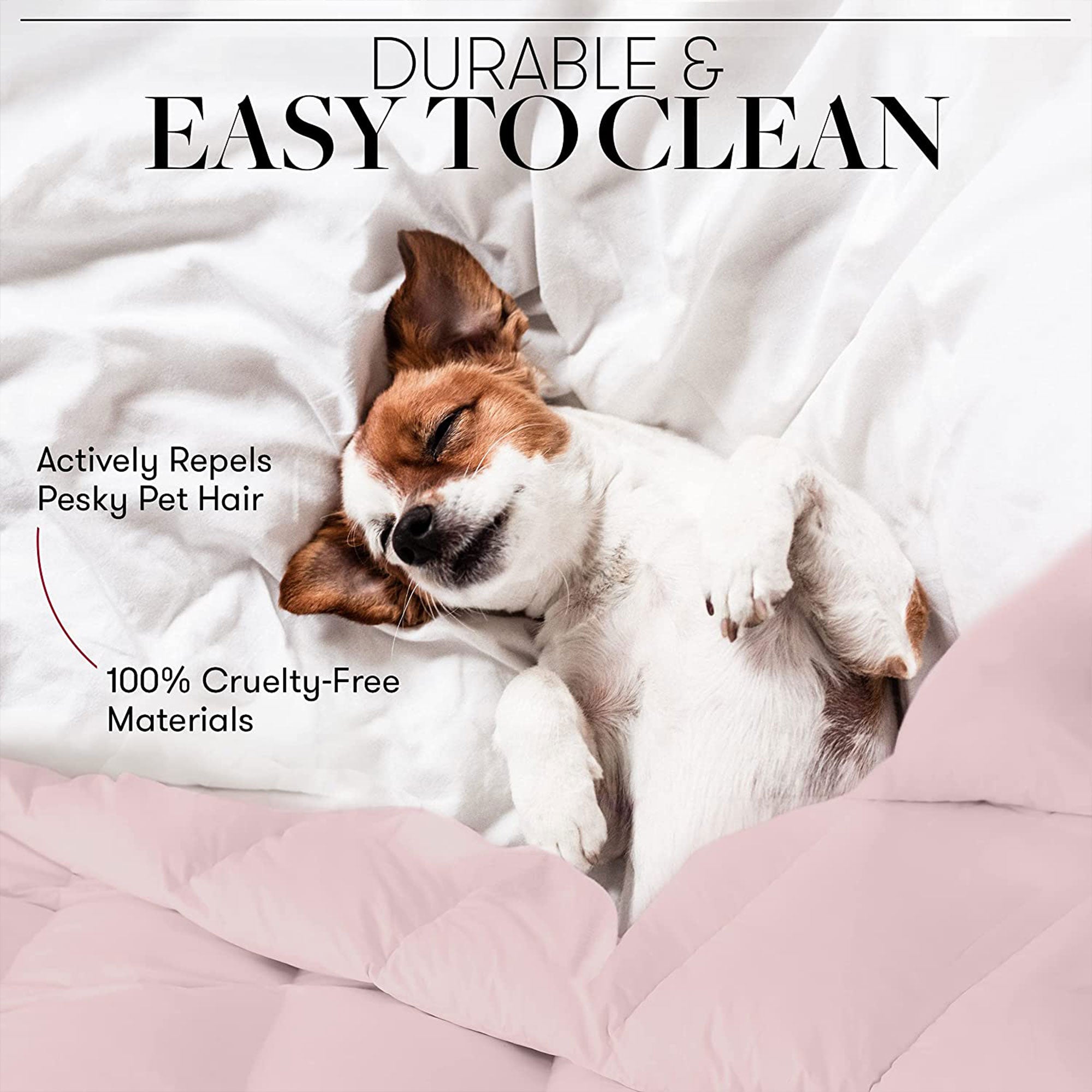 • Durable and easy to clean, this down comforter actively repels pesky pet hair for easy maintenance