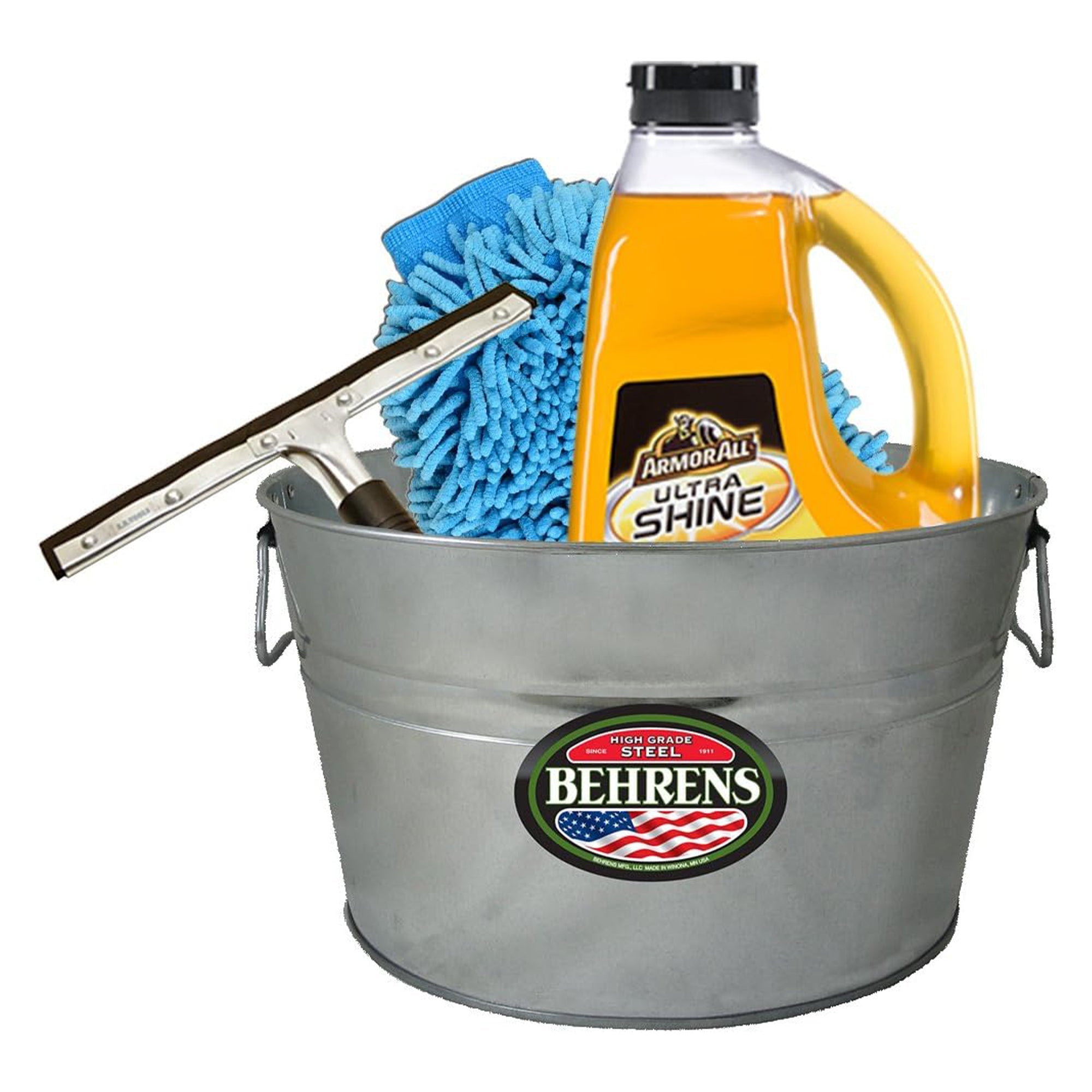 Behrens 5 Gallon Round Galvanized Weatherproof Steel Tub with Handles, Silver