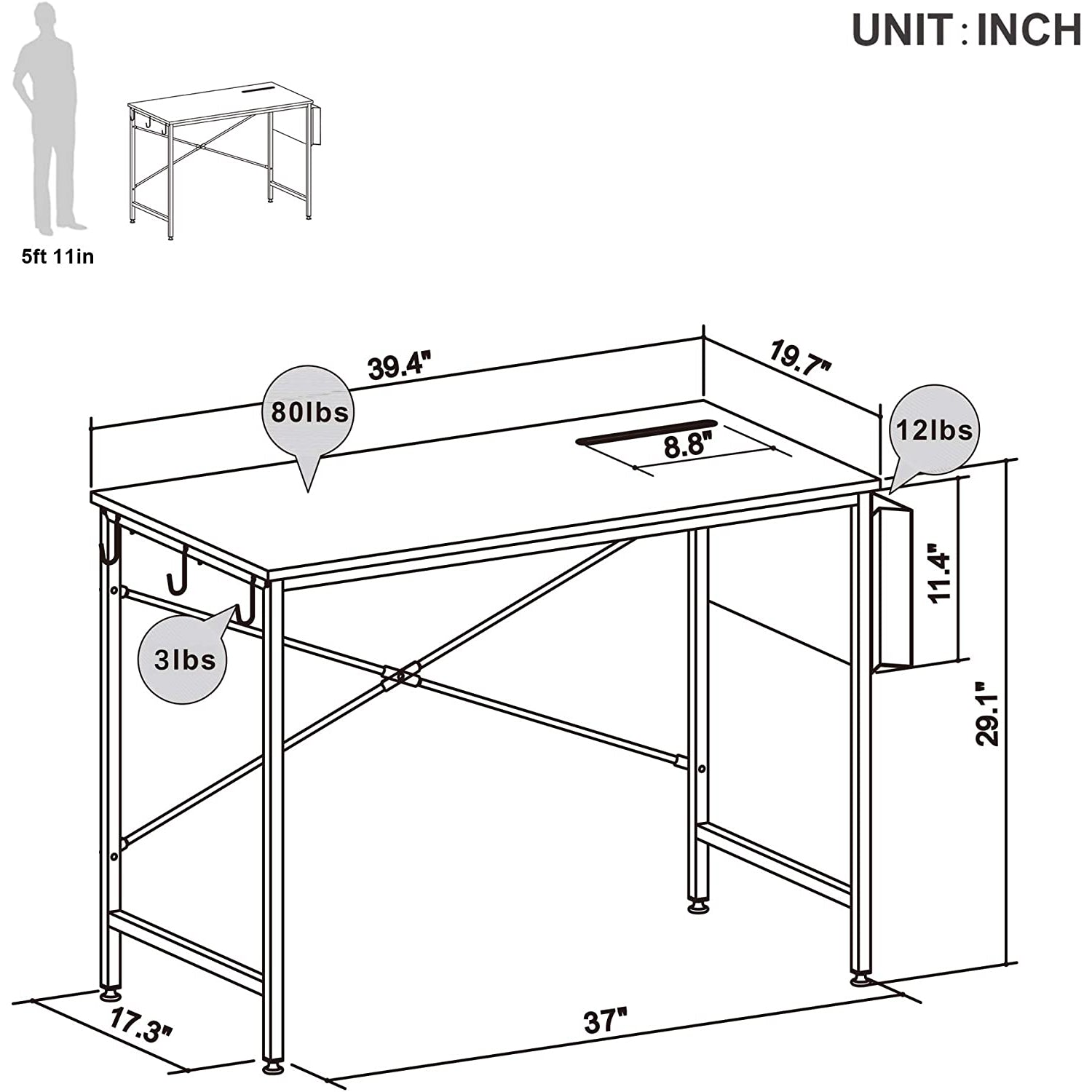 Bestier Computer Office Desk Workstation with Storage Bag & Hook, Gray, 39 Inch