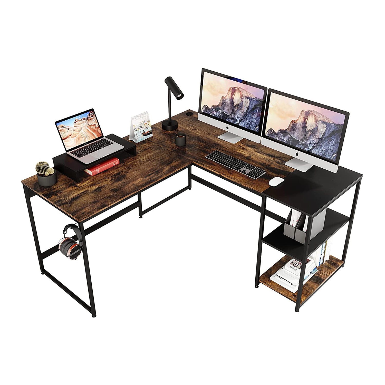 Transform this desk to whatever shape you need, whether you need a long 94-inch desk to work side-by-side with your small business partner or a corner 59-inch "L" desk to maximize your workspace. If you need a change, switch between the 2 formats with ease. Fit your multiple monitors and desk essentials with ease and enjoy an efficient, productive workspace. With the included adjustable side shelf, monitor stand, and headphone hook, you'll stay organized with your frequently-used items close at hand.