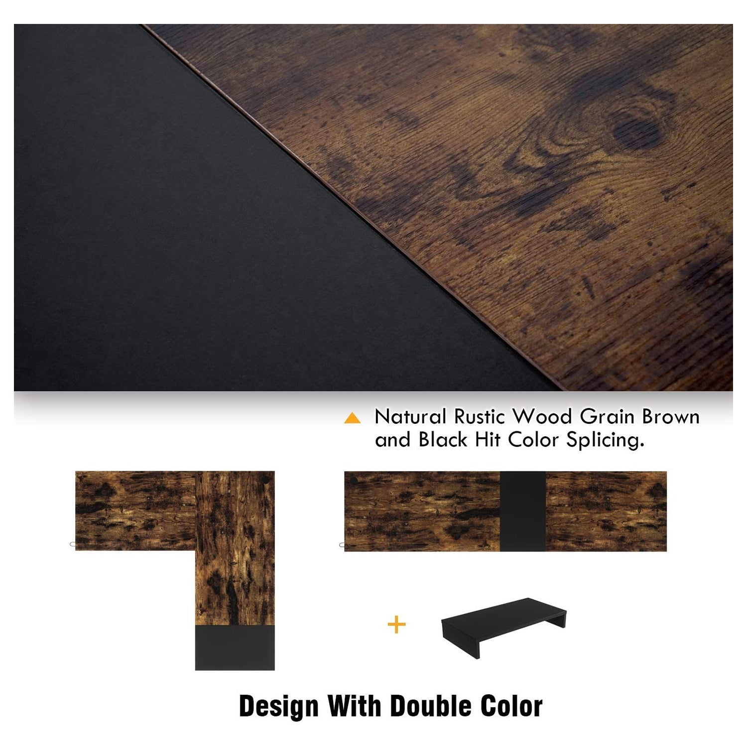 Bestier Industrial Customizable L Shaped Corner or Long Office Study Desk, Brown