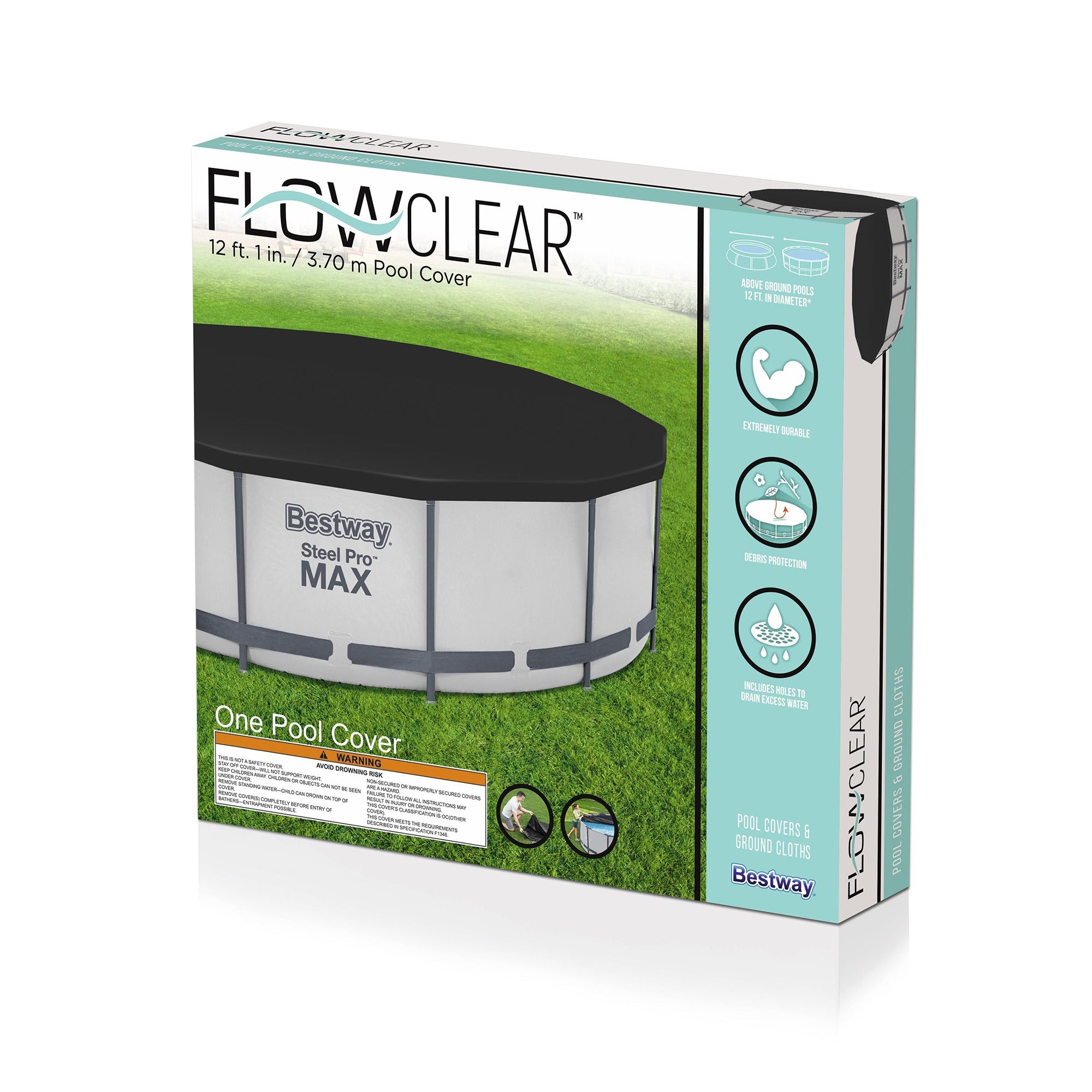 Bestway Flowclear Round 12' Pool Cover for Above Ground Frame Pools (Cover Only)