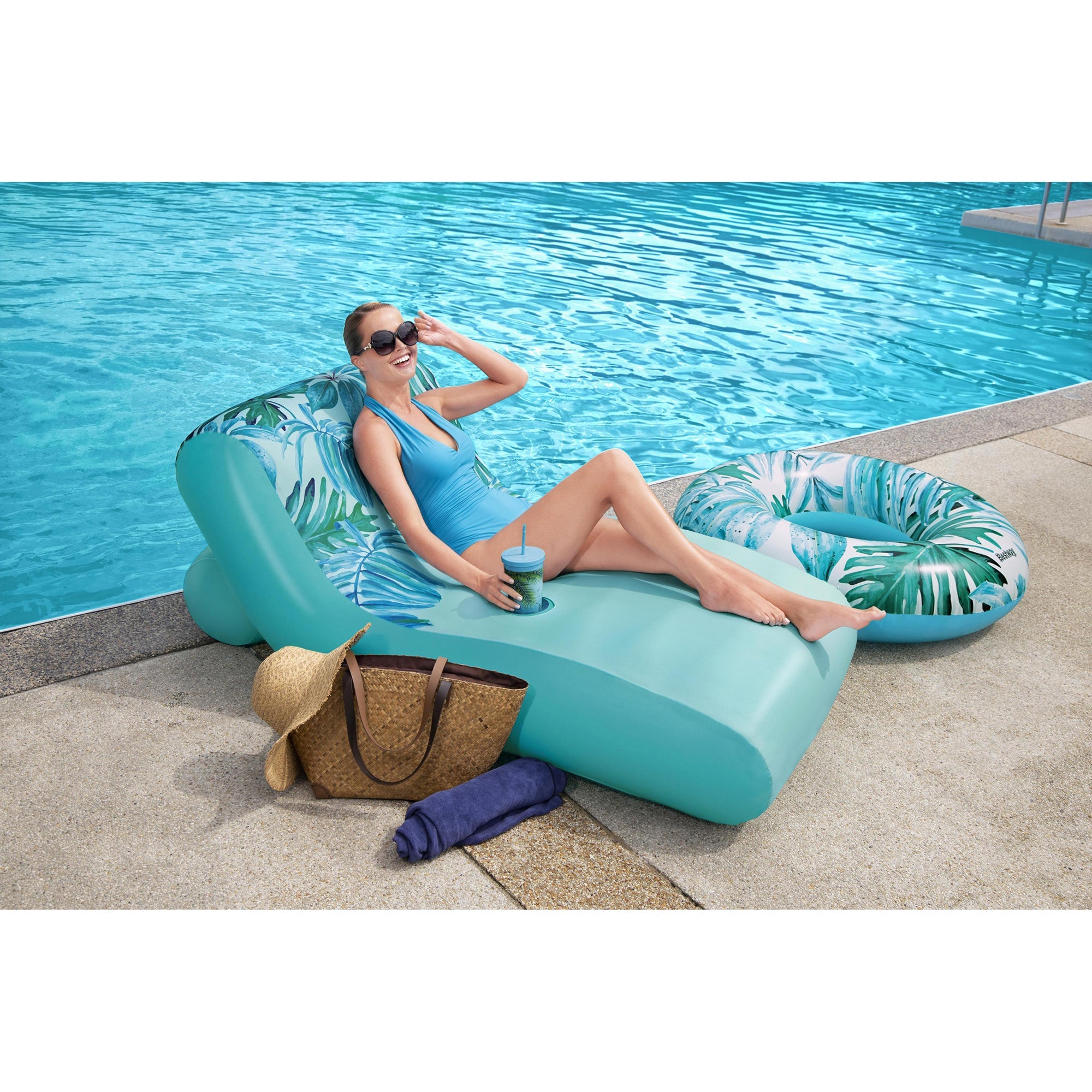 Bestway H2OGO! Luxury Fabric Covered 64" Inflatable Pool Lounger Float, Blue