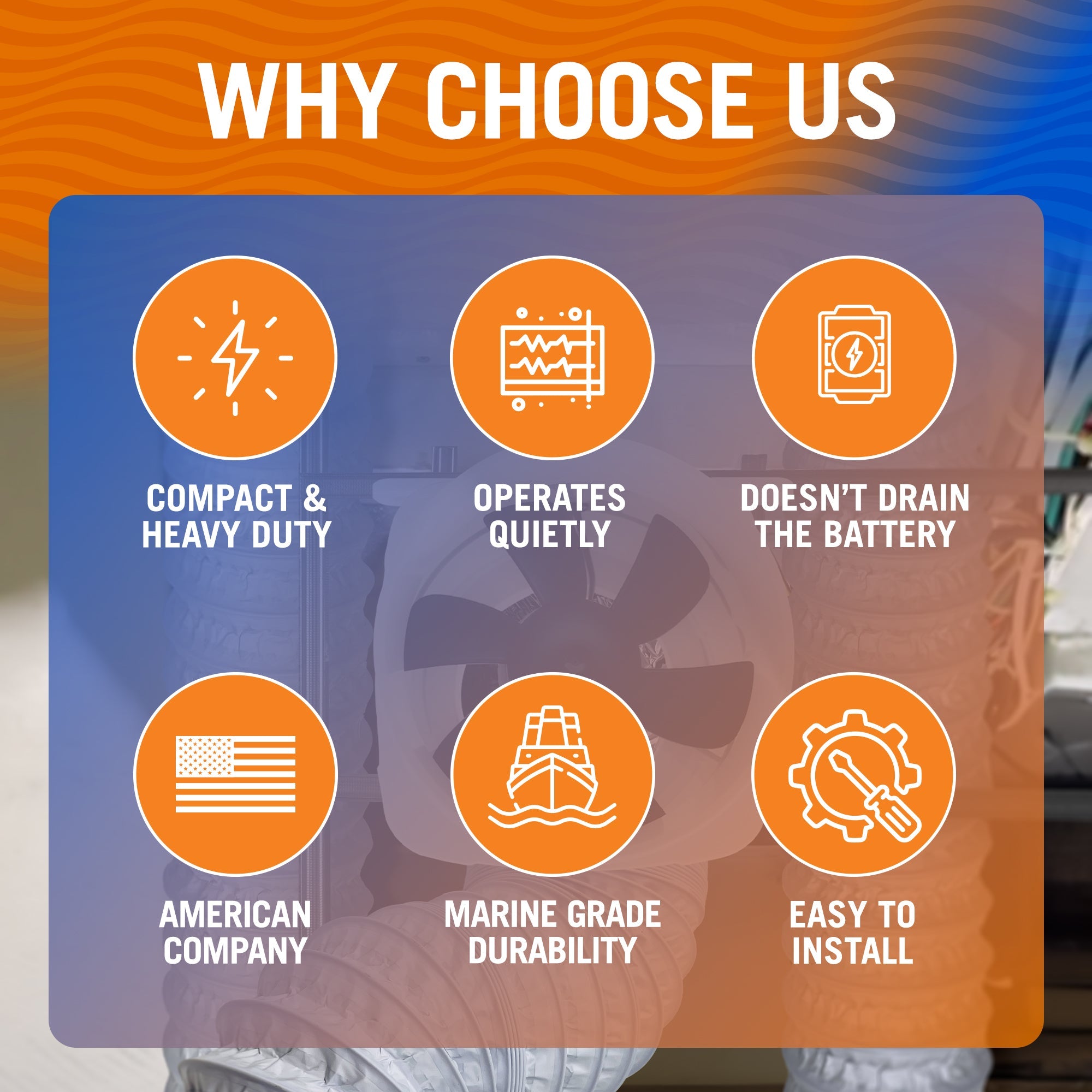 - MARINE GRADE DURABILITY: Backed by a 2-Year Warranty, our bilge fans are designed to keep water and dirt away, increasing durability. Made with corrosion-resistant materials to withstand sea air and high moisture.