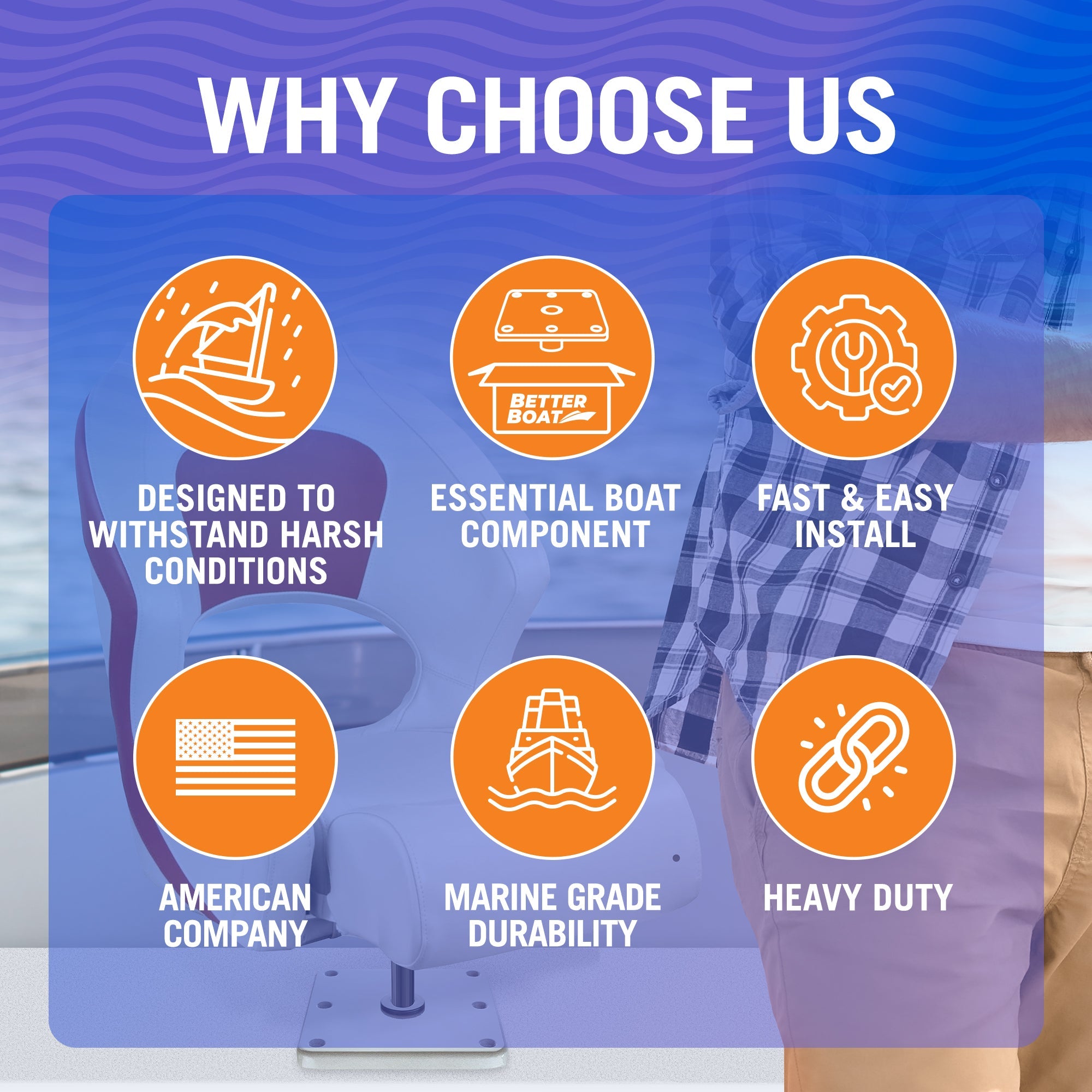 - WHY CHOOSE BETTER BOAT: As a small, family-owned American business, we are dedicated to providing premium quality boat care products. We guarantee your satisfaction with our boat seat mounting plate, post base, or complete mounting kit.