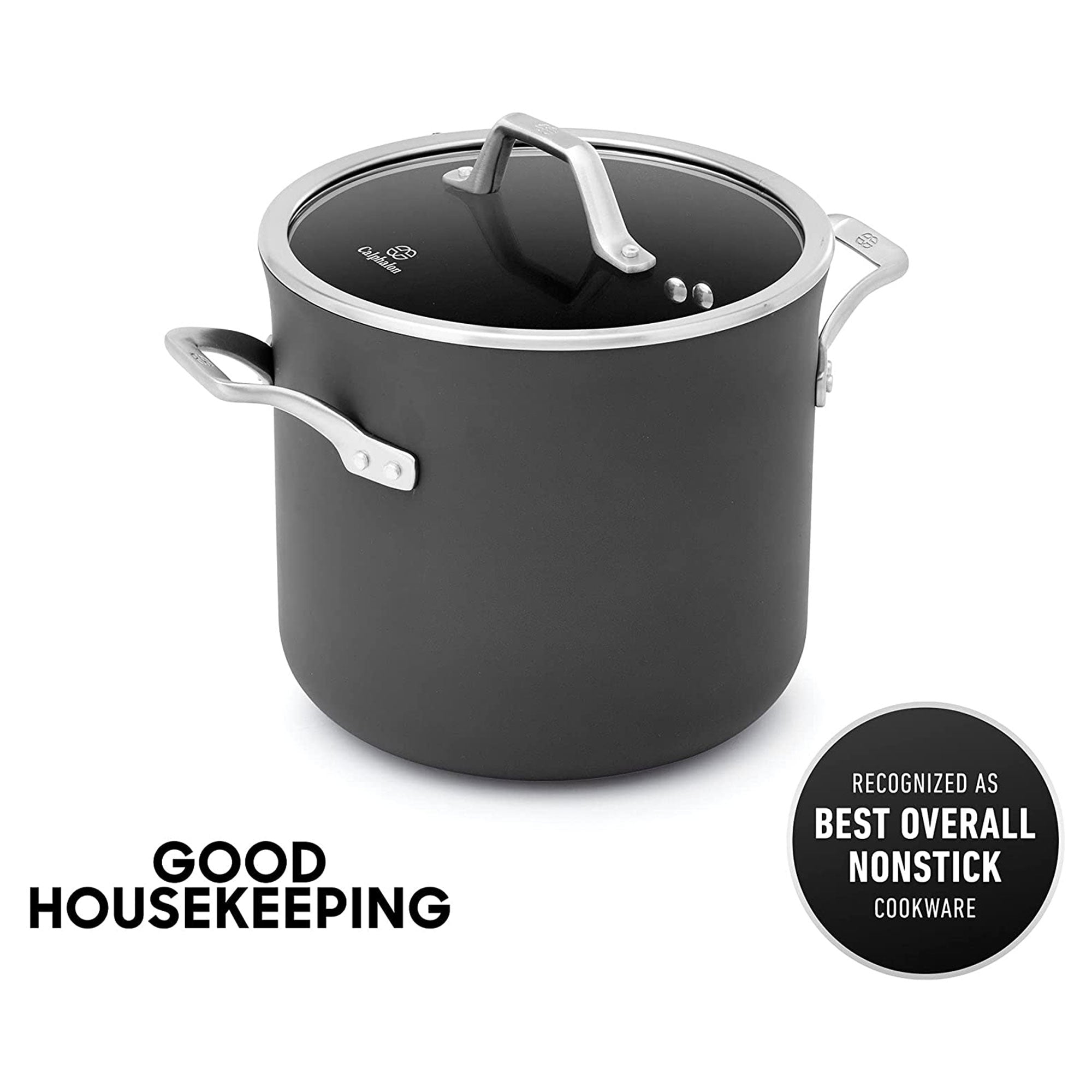 You're days of cursing at cookware, wasting food, and soaking pans are done. Upgrade your cookware with the Calphalon Premier Hard-Anodized Nonstick Stockpot.