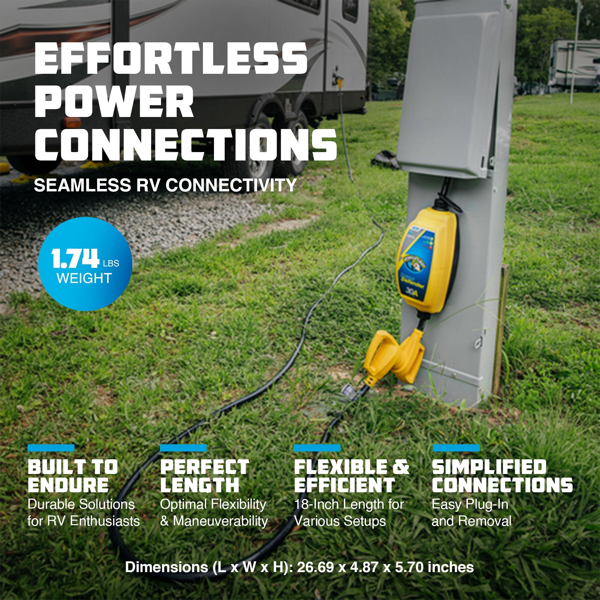 - Seamlessly connect your RV power cord to matching amperage outlet boxes for trouble-free power access