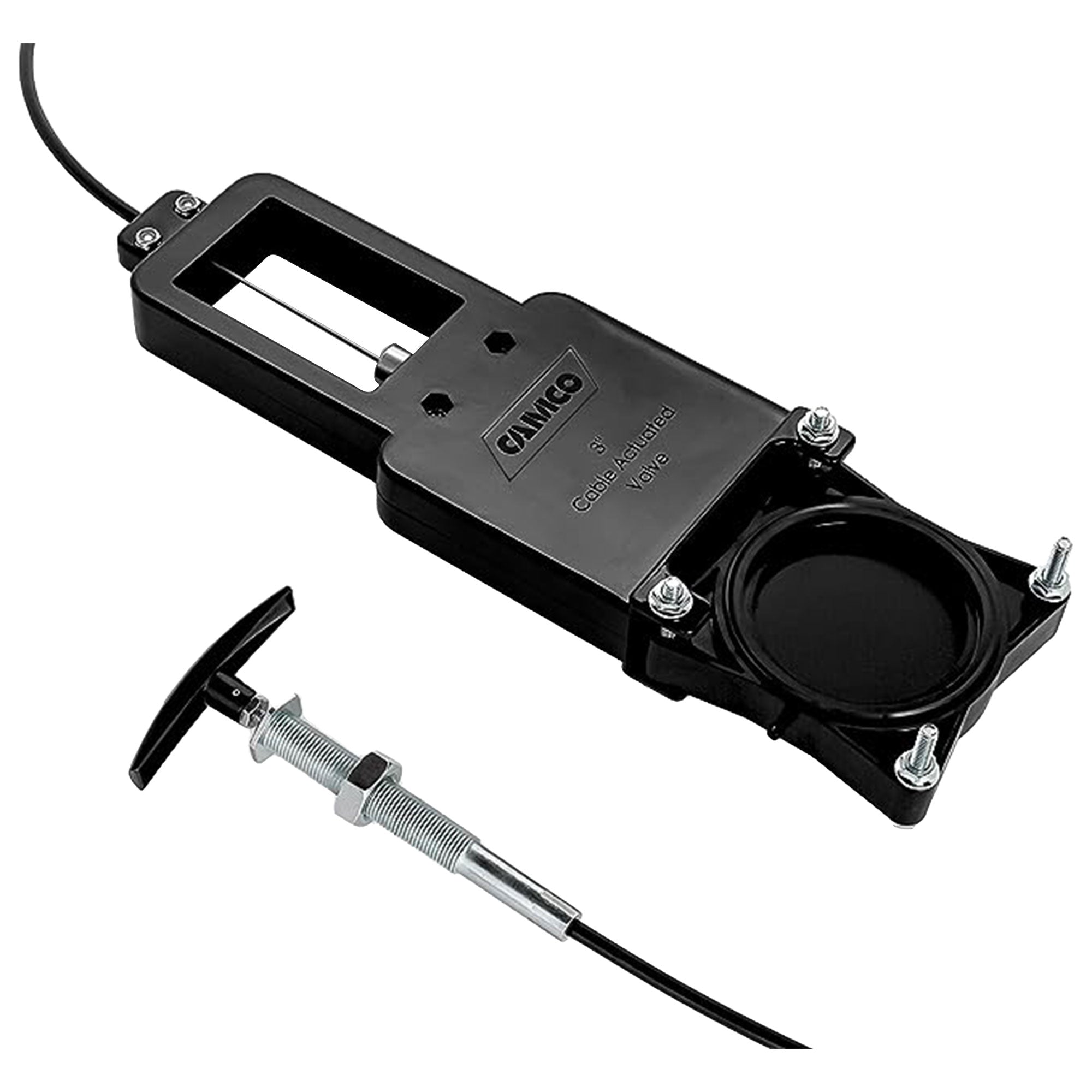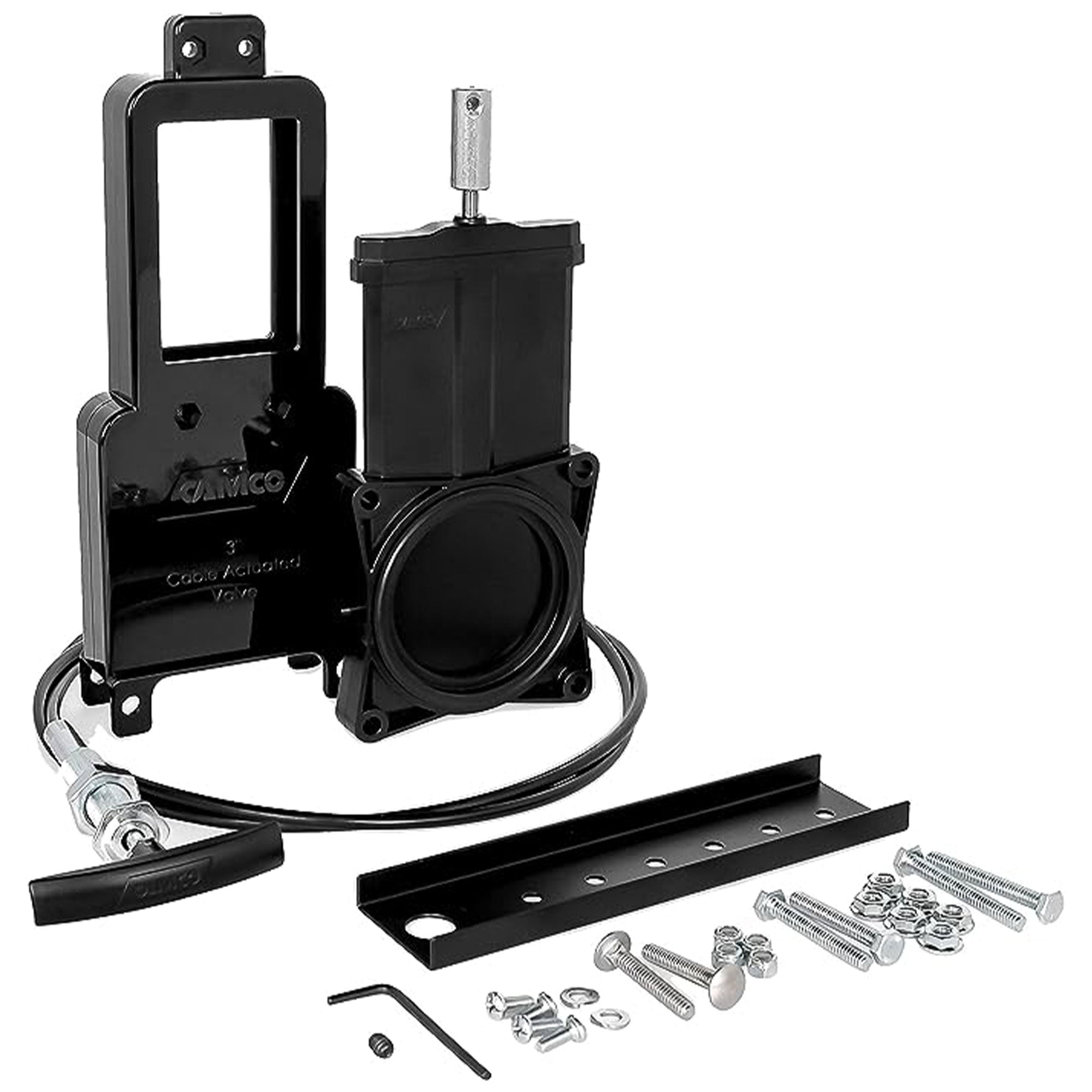 Camco 3" RV Waste Valve w/72" Cable Extension Kit, Sidewall/Compartment Mount