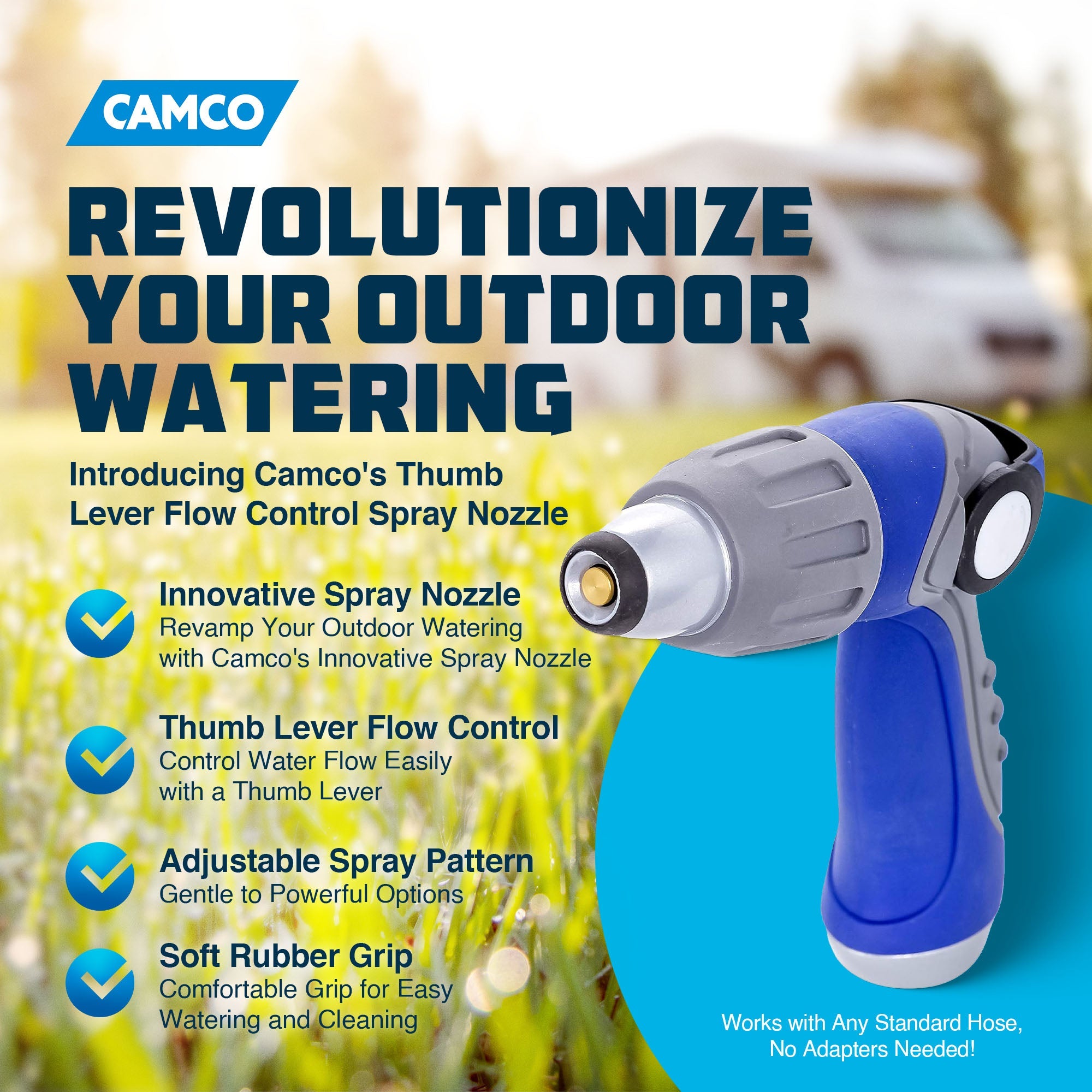Whether you're tending to your garden oasis or tackling outdoor cleaning projects, the Camco Thumb Lever Flow Control Spray Nozzle ensures efficiency, comfort, and reliability.
