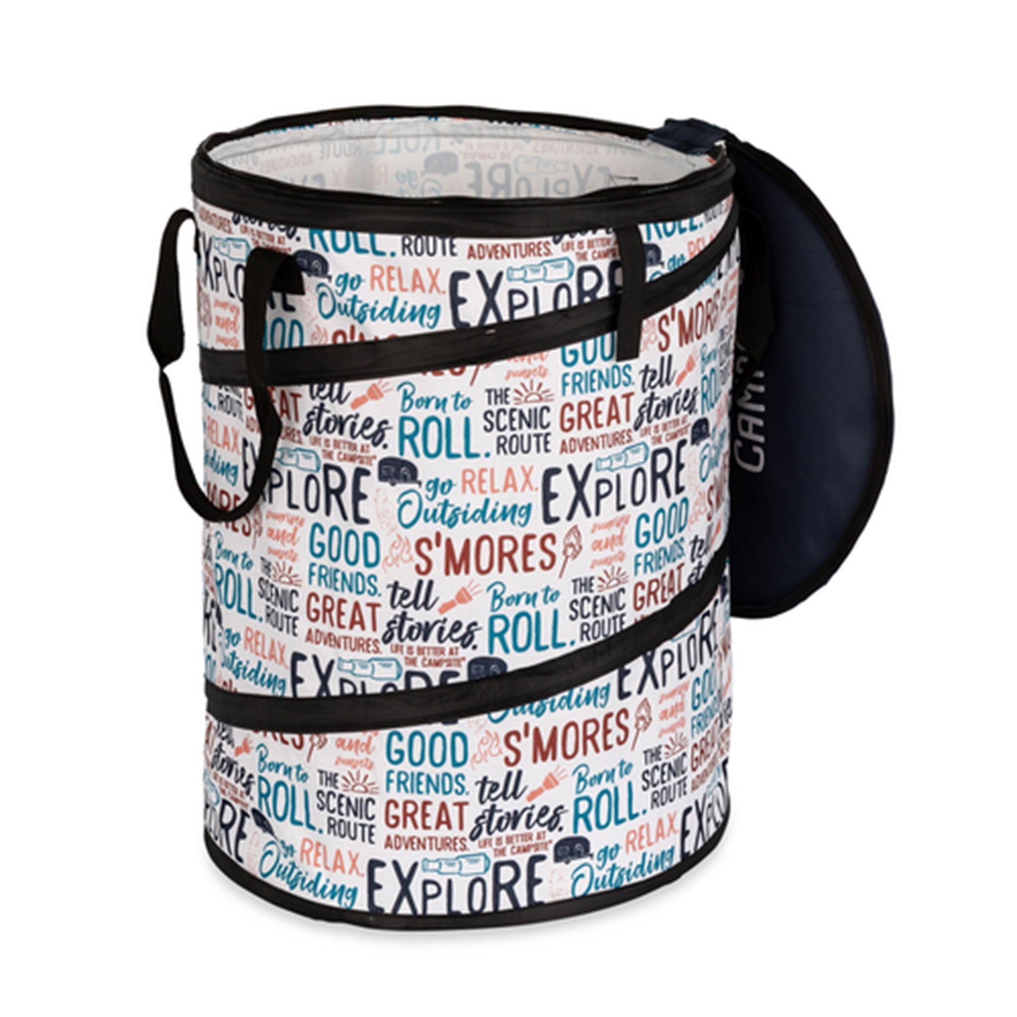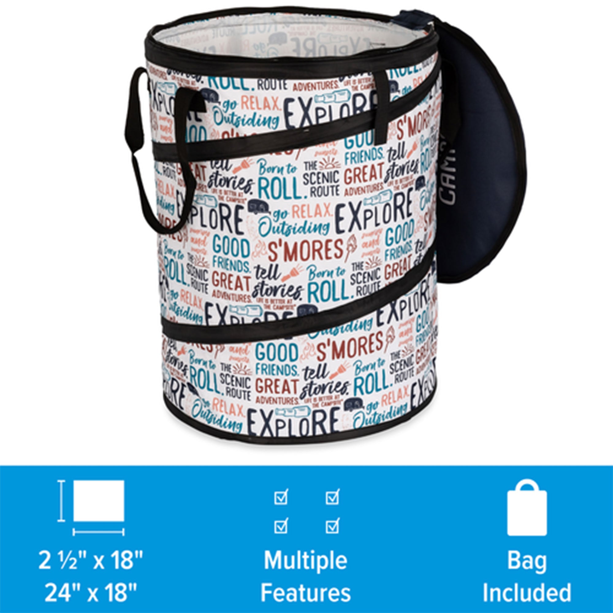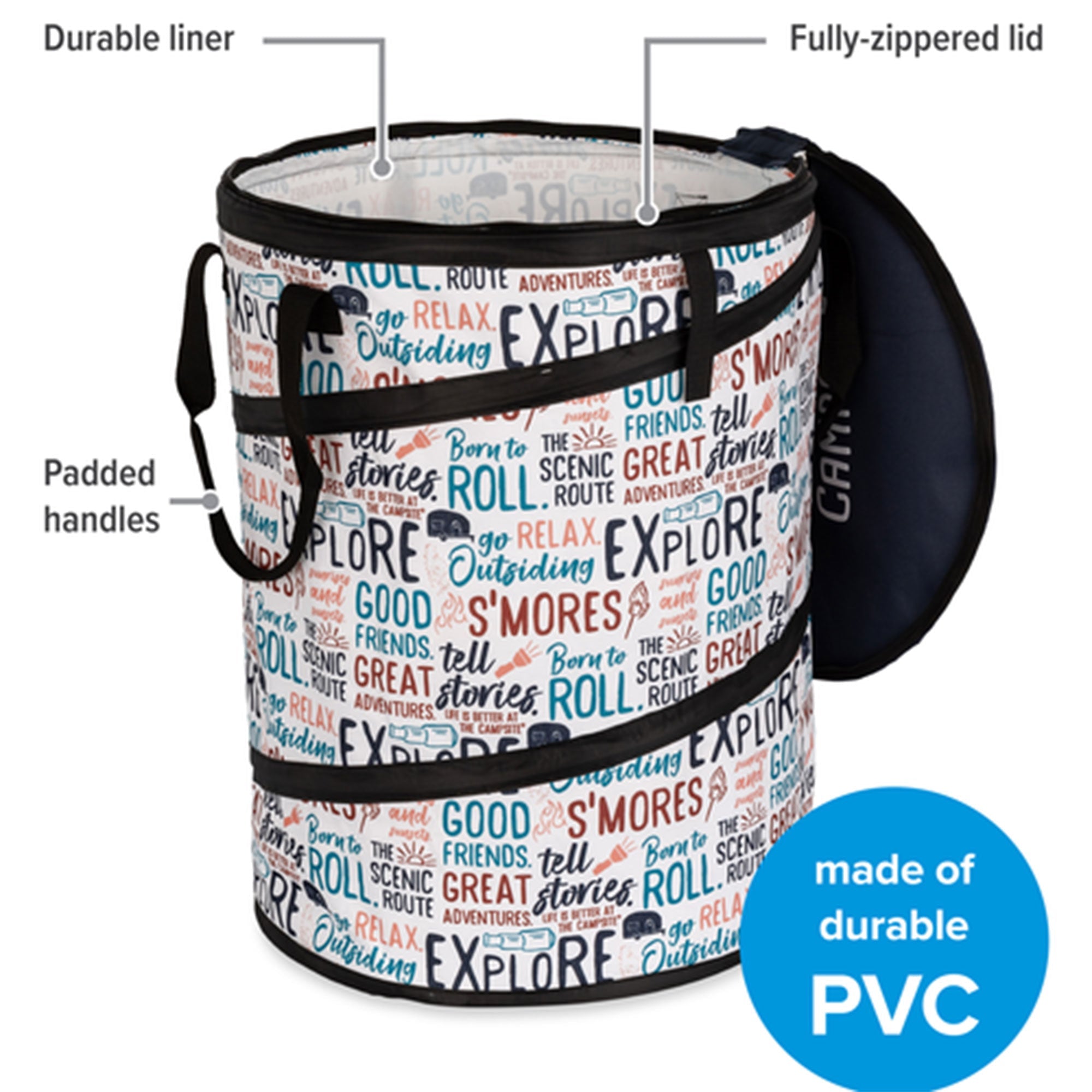 Camco Campsite Pop Up Utility Container with Liner and Zipper Close, Multicolor