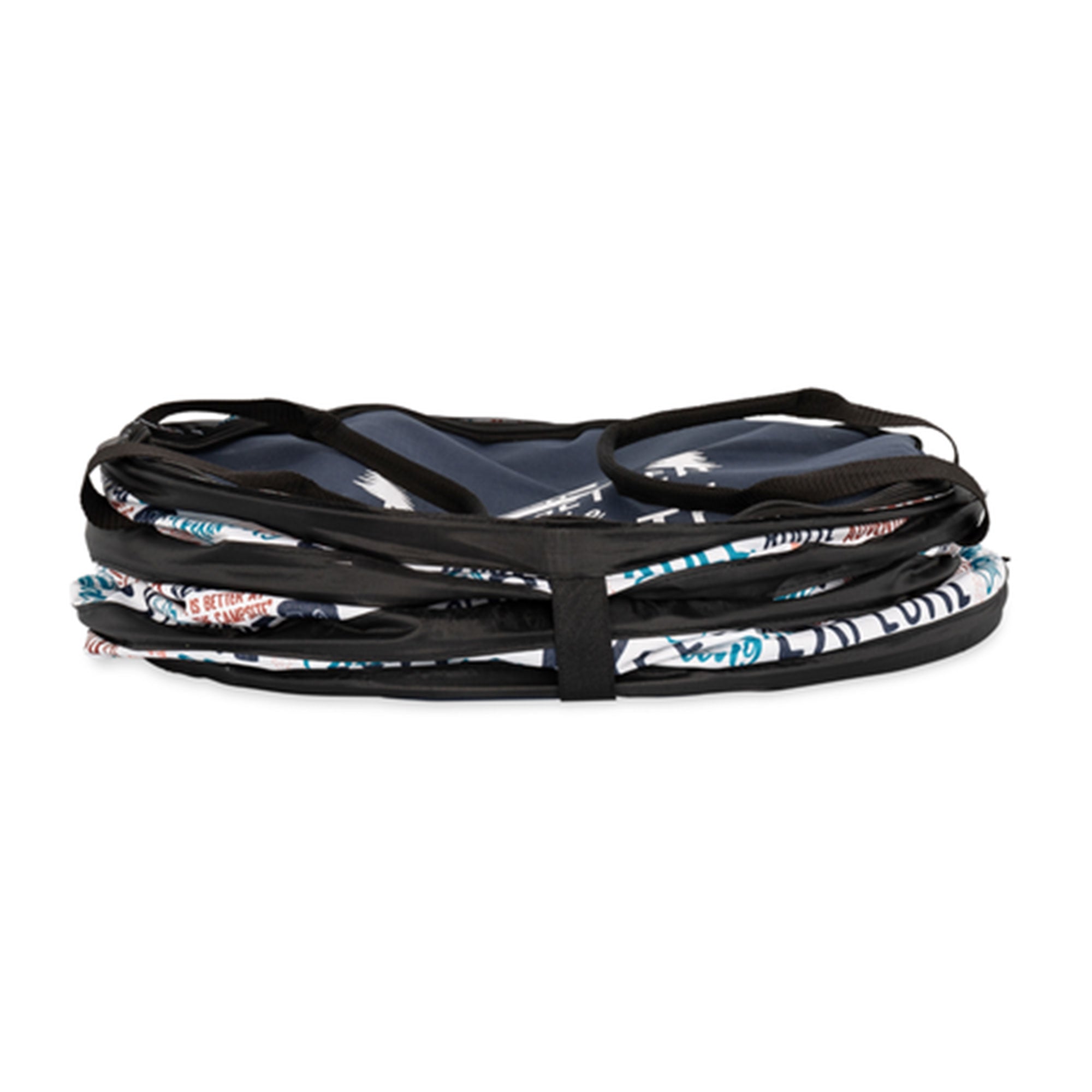 Crafted to embody the spirit of outdoor living, this versatile container effortlessly merges functionality with flair, ensuring that every moment spent amidst nature is convenient and stylish. Designed to accommodate 30-gallon trash bags, its generous 18-inch diameter offers ample space for all your outdoor waste disposal needs. Constructed from durable fabric with a PVC inner liner, this container stands the test of time and guarantees longevity even in rugged environments. The container features a secure zippered lid, keeping your refuse neatly contained and out of sight until it's time to dispose of it. Equipped with padded handles, transportation is a breeze, allowing you to effortlessly relocate the container as needed without sacrificing comfort. Stability is paramount, so we've included a ground anchor to ensure your container remains firmly planted, even in windy conditions.