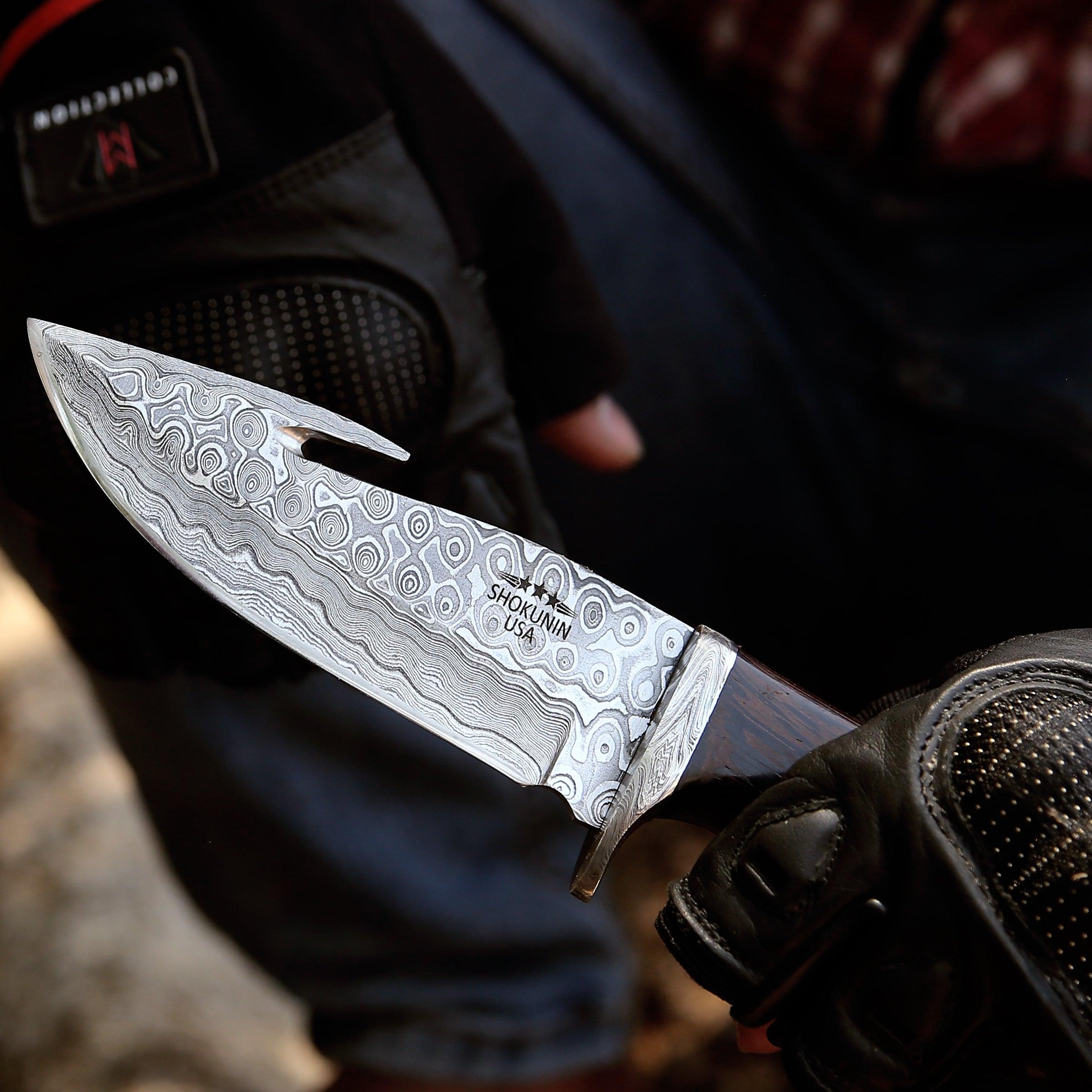 Captain Damascus Hunting Knife with Gut Hook & Exotic Wenge Wood Handle