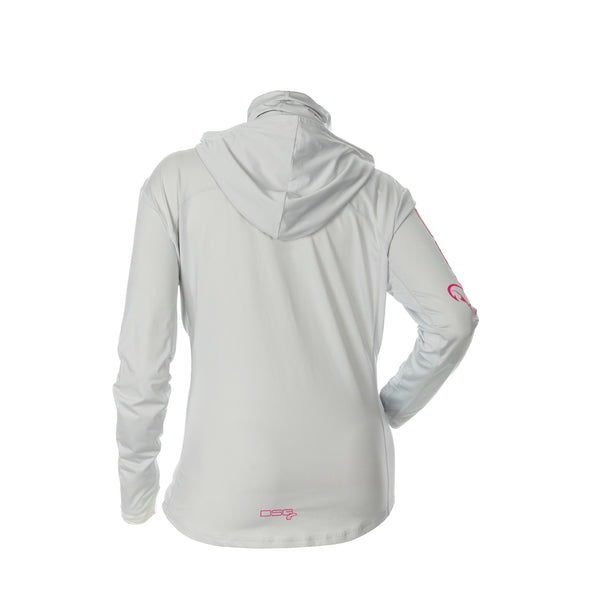 The Chloe hooded sun shirt will be your new best friend on the water. This shirt is perfect for those looking for maximum sun protection, featuring a fixed hood, removable neck gaiter, thumb holes on lower sleeves, and UPF 50+ protection. This shirt is made of a technical fabric that is quick dry and moisture wicking. Mesh side panels allow for additional moisture wicking and ventilation on the garment.