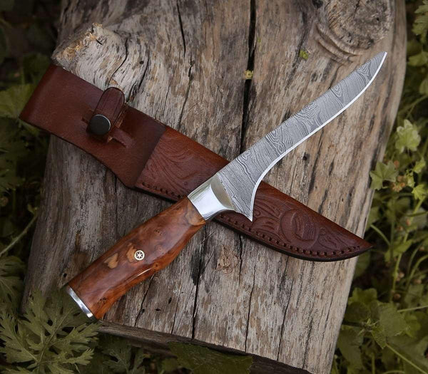 Concord Damascus Fillet Knife with Exotic Olive wood Handle