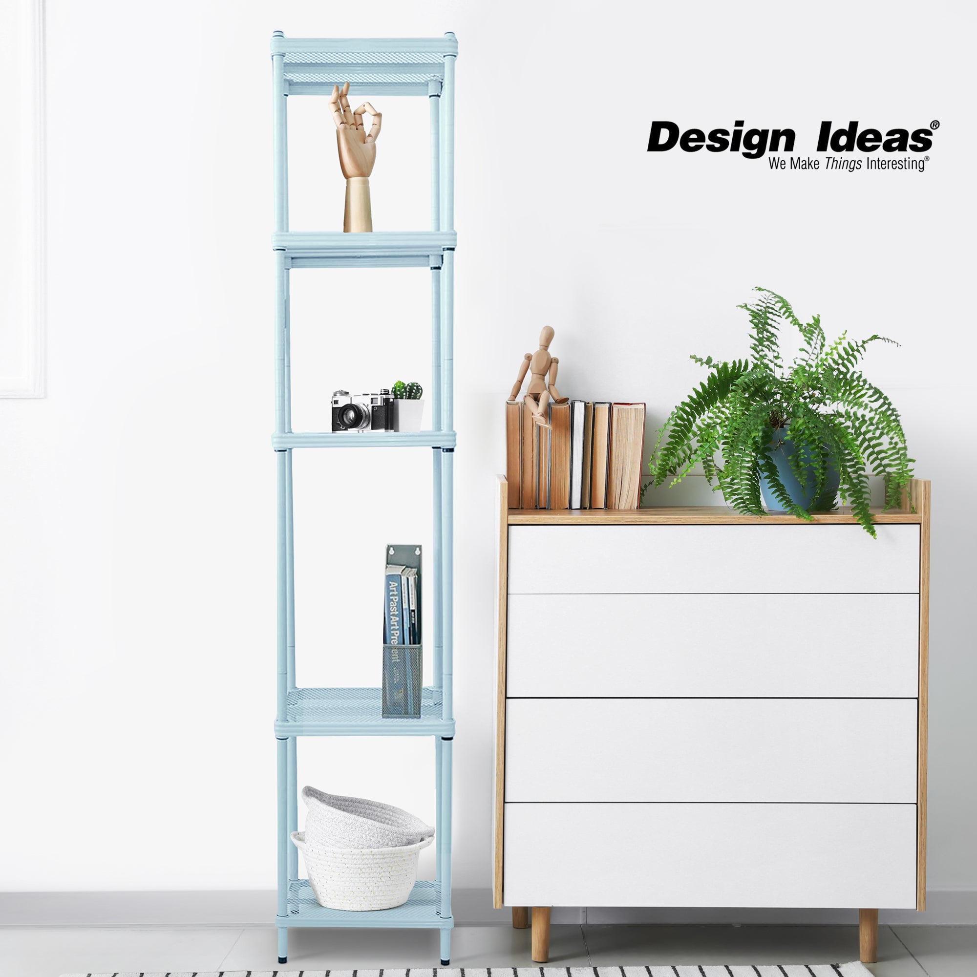 Design Ideas MeshWorks 5 Tier Tower Metal Storage Shelving Unit Rack, Sky Blue