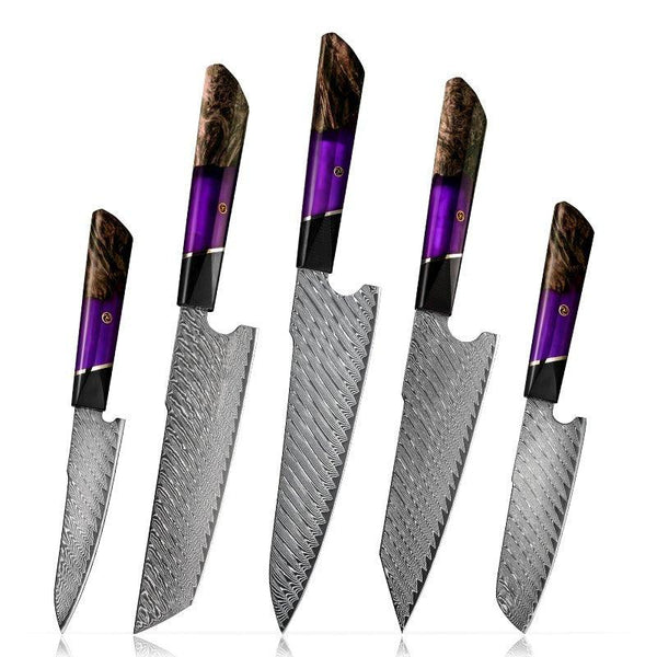 Elite Series VG10 Damascus Knife Set with Exotic Burl Wood Handle