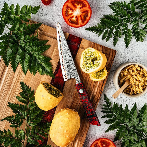 HAND FORGED DAMASCUS STEEL: Manufactured with an ultra-sharp, hand-forged VG10 Damascus steel cutting core at HRC 62+ hardness, this knife offers unrivaled performance and incredible edge retention.