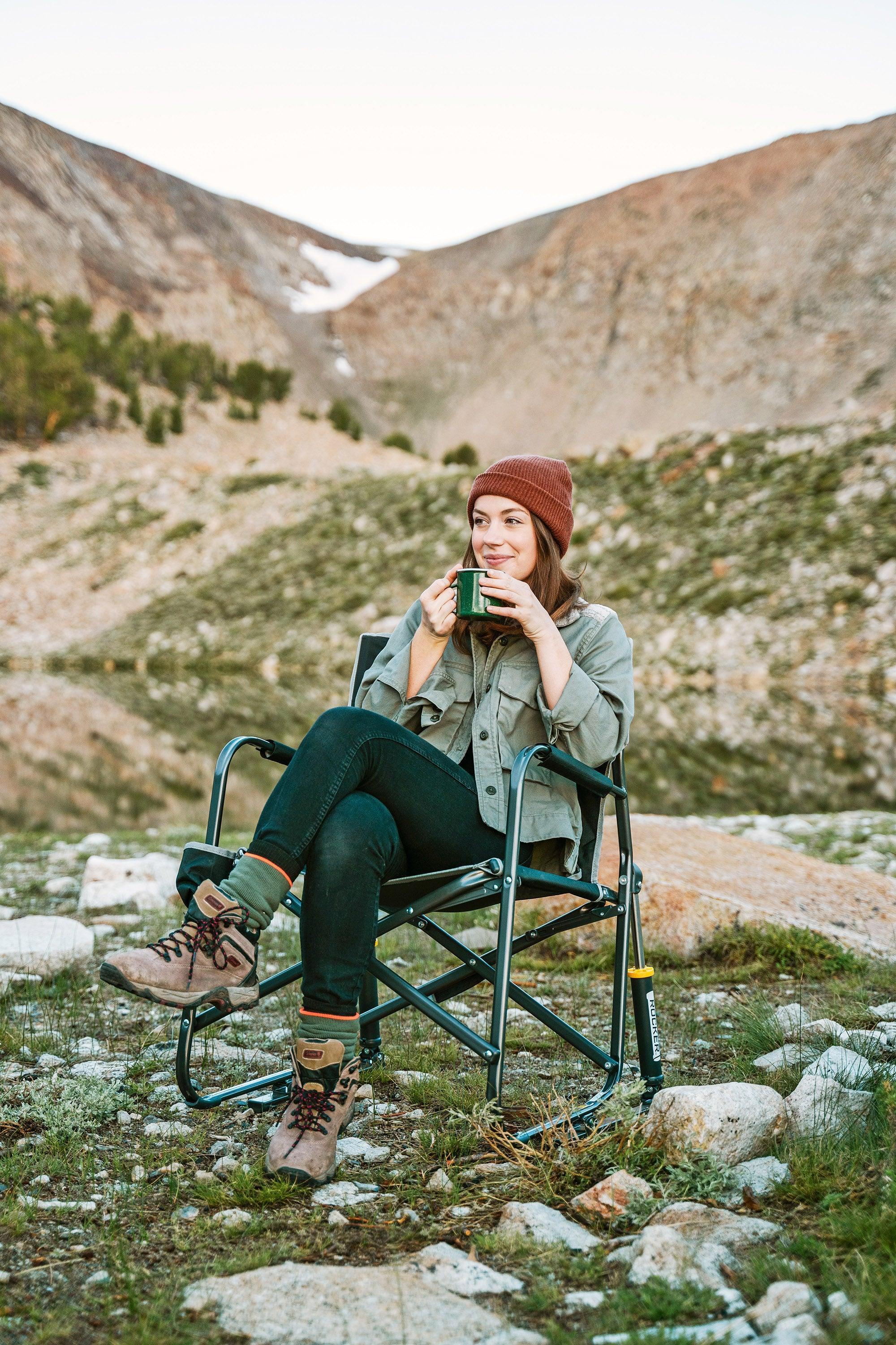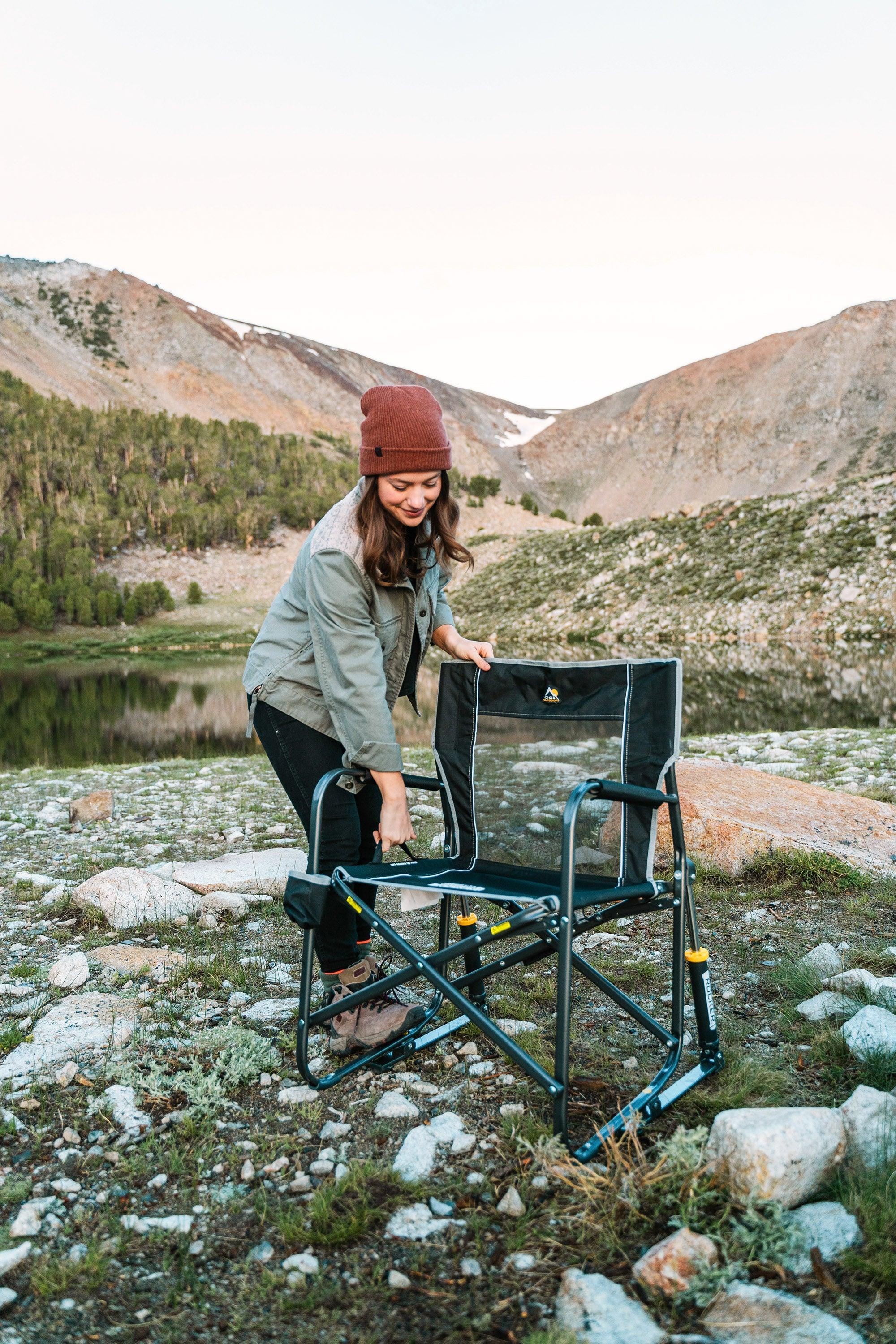 Smooth Rocking Motion: Camping rocking chair with patented Spring Action Rocking Technology rocks on most outdoor surfaces; Use this outdoor folding chair as a rocking camping chair, lawn chair, or sports chair.