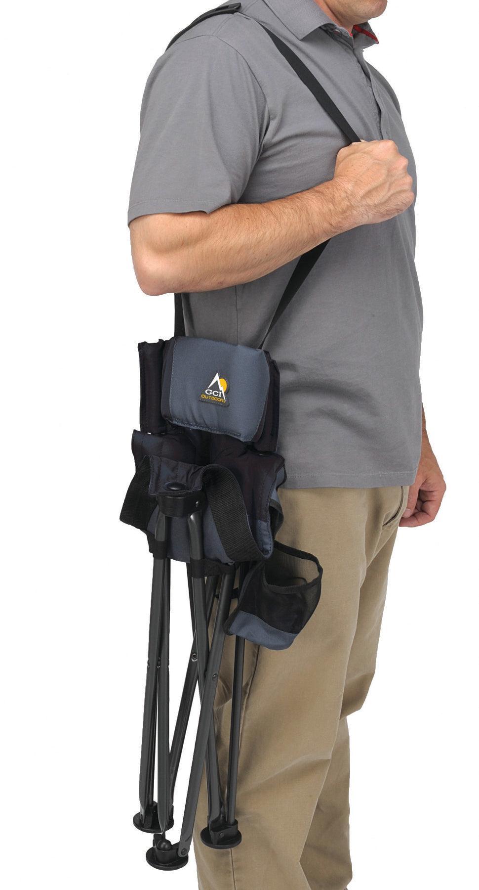 Easy Storage: Shoulder strap with Auto-Fold Technology allows for easy folding and carrying; Simply pull up on the carry strap to collapse the folding camp stool.