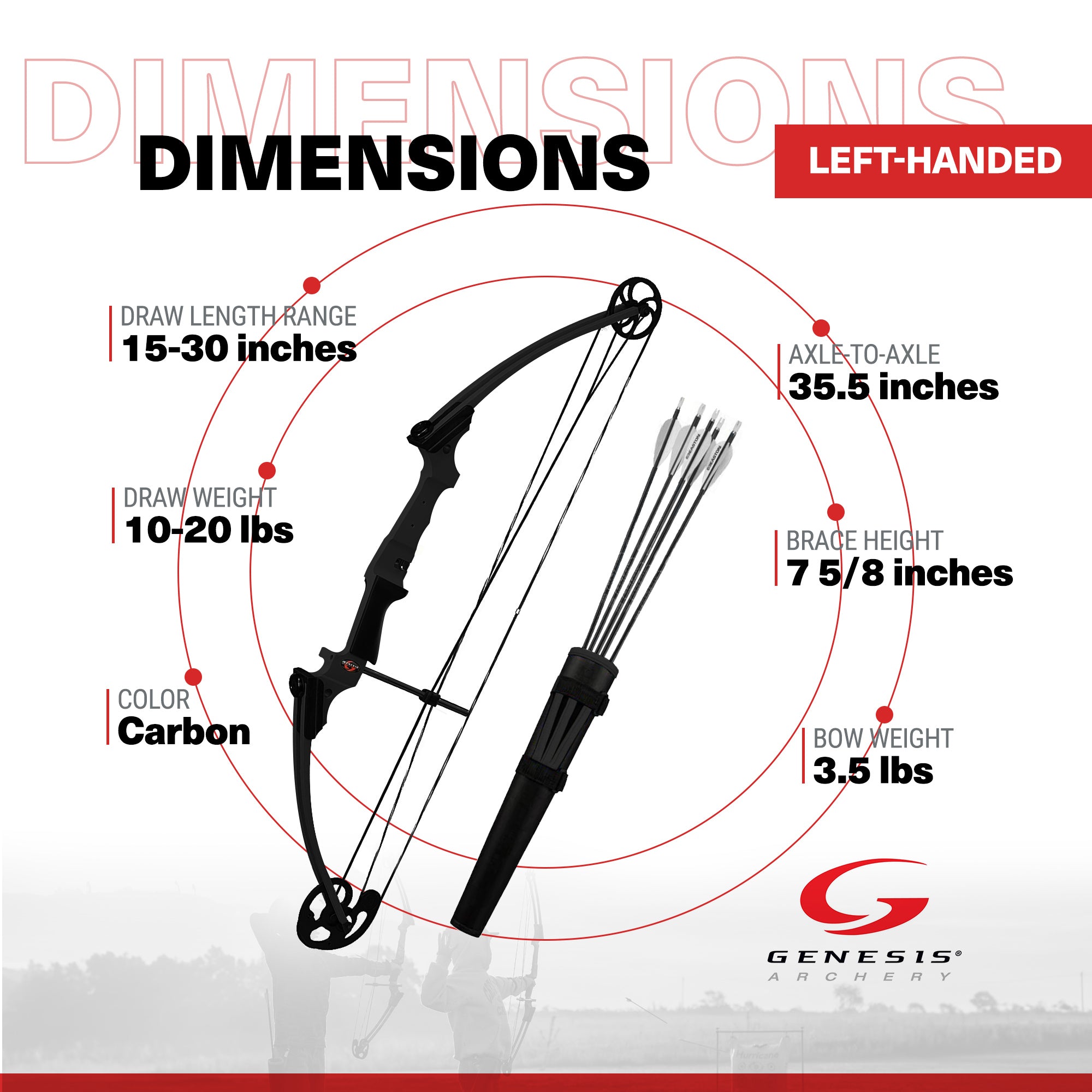 Genesis Original Archery Compound Bow w/ Adjustable Sizing, Left Handed, Carbon