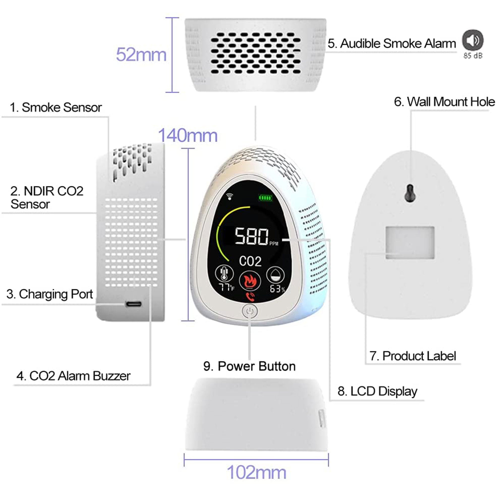 - CO2 meter, temperature and humidity monitor, and smoke alarm in 1 unit gives you amazing CO2 readouts and keeps your family safe